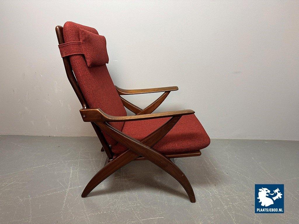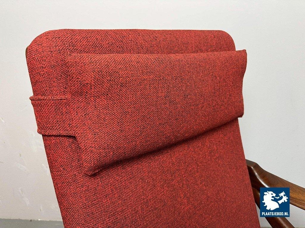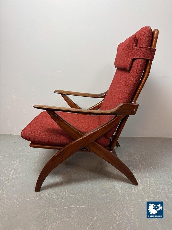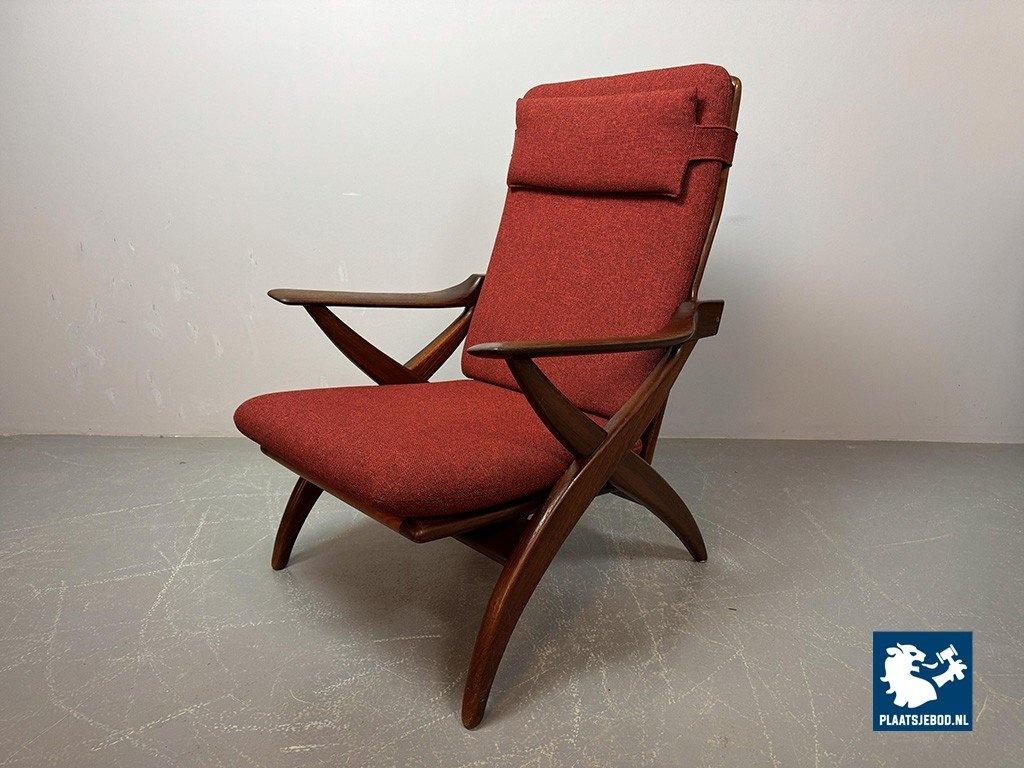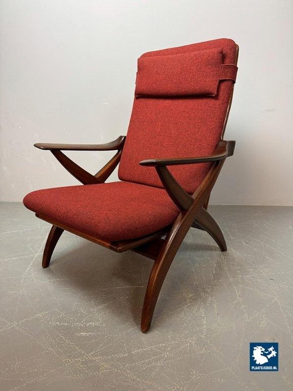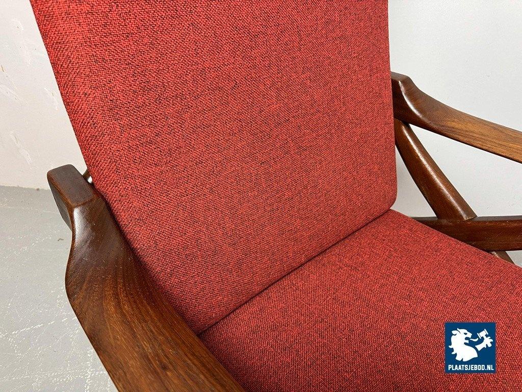 Lot 305-211-CH330-A1: Mid-Century High Quality Teak Lounge Chair with Burgundy Red Fabric Upholstery Attributed to Topform, The Netherlands, 1960s.