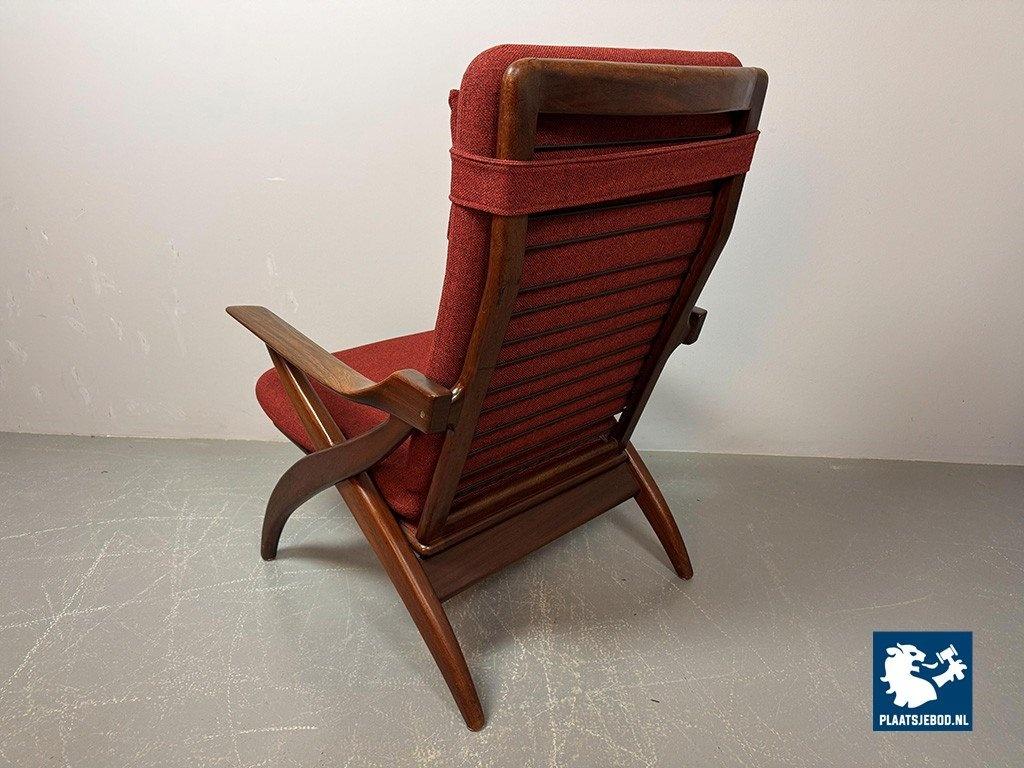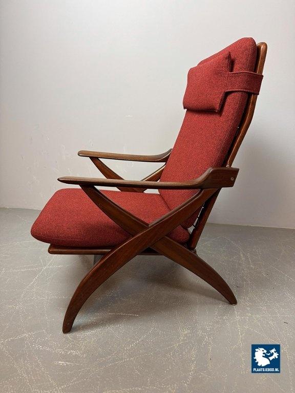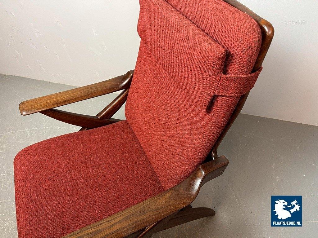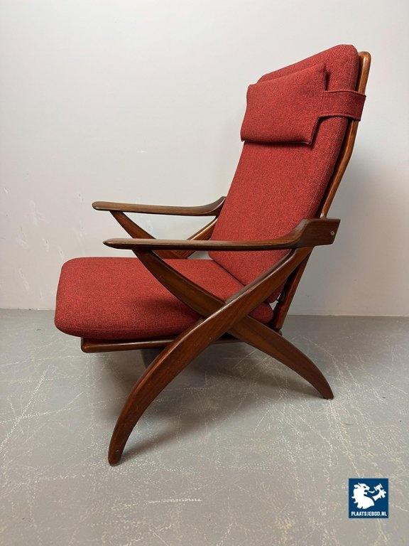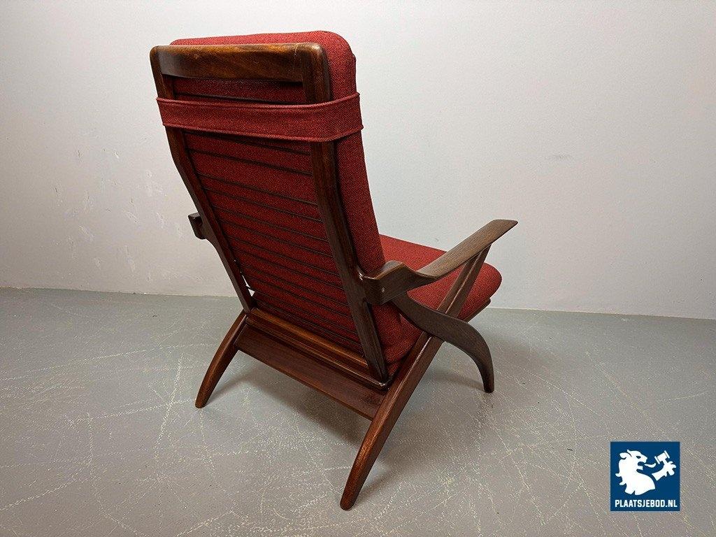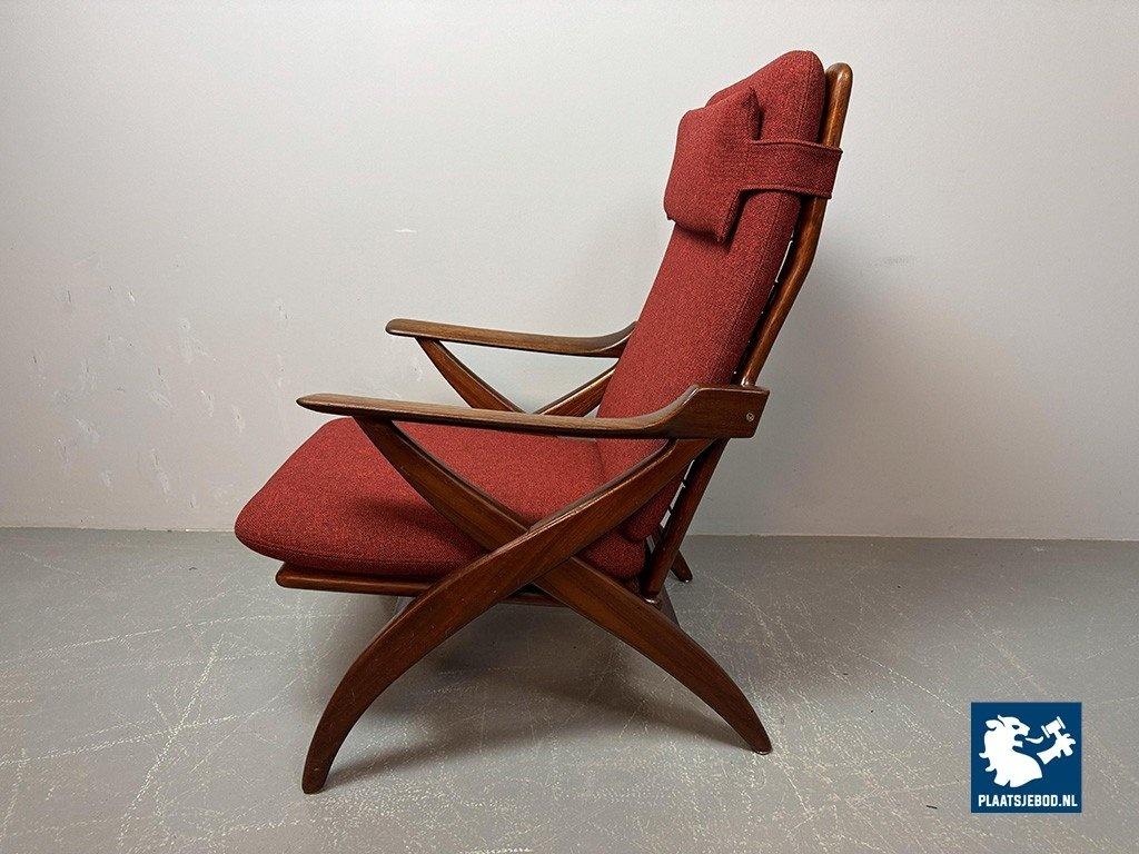 Lot 305-211-CH330-A1: Mid-Century High Quality Teak Lounge Chair with Burgundy Red Fabric Upholstery Attributed to Topform, The Netherlands, 1960s.