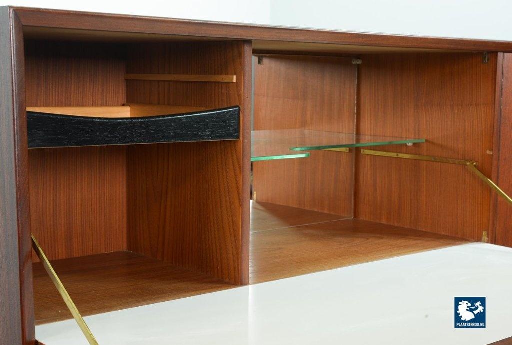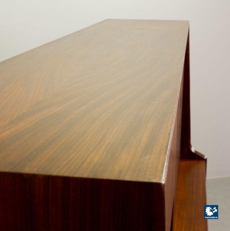 Lot 305-206-ST027-1-B4: Mid-Century Louis van Teeffelen Design Teak Wooden High Sideboard for Webe with Ceramic Ravelli Tiles. The Netherlands, 1960s