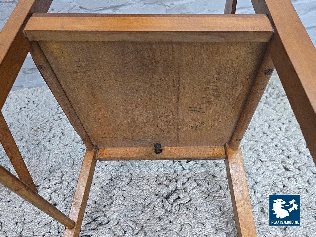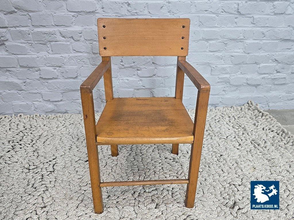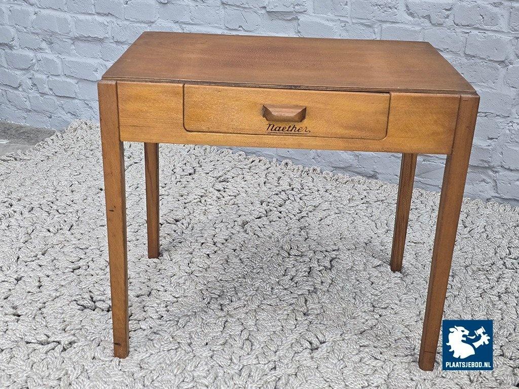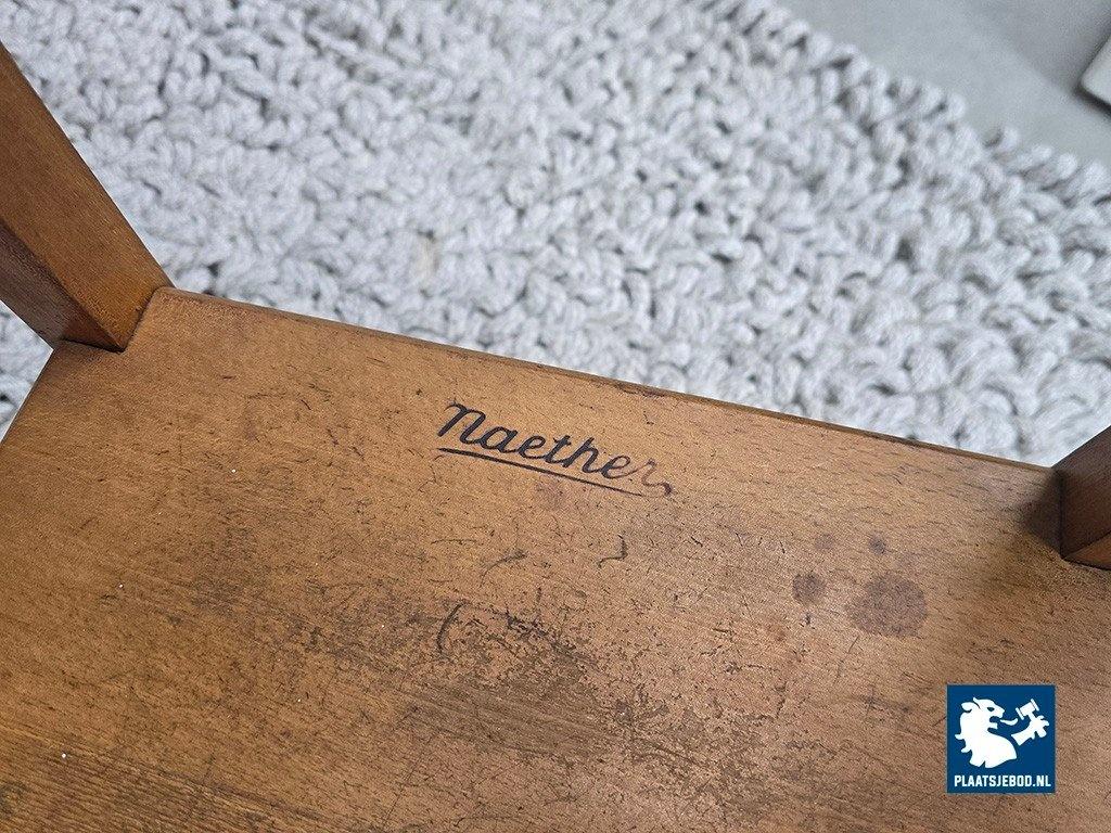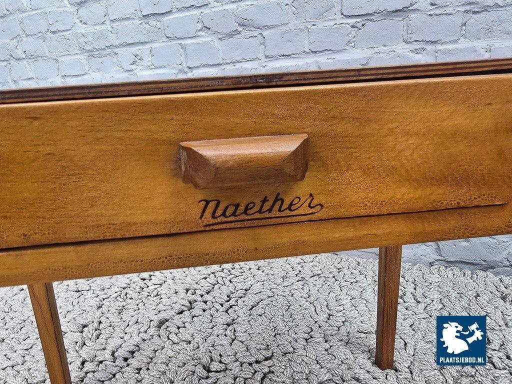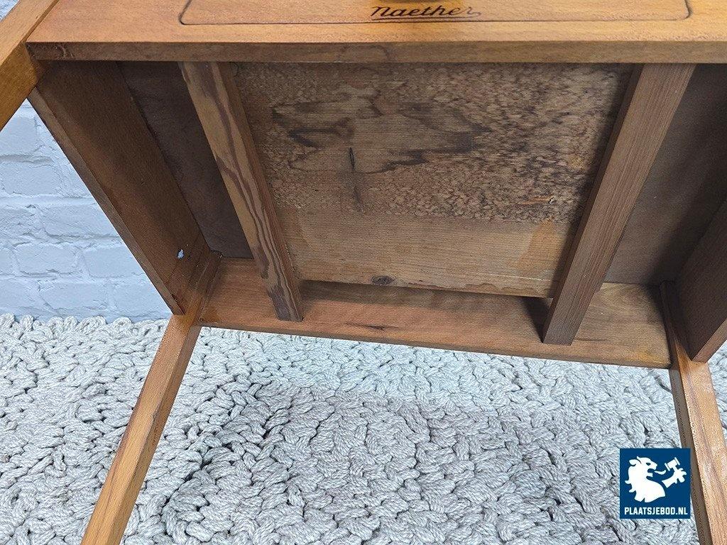 Charming children’s oak wooden desk with matching chair produced by the German manufacturer Naether, known for its high-quality wooden furniture. The set features soft proportions and a timeless, functional design that reflects mid-century European craftsmanship. Both desk and chair show gentle signs of use consistent with age, and are presented in a well-preserved vintage condition, with a warm patina that enhances their character.Dimensions Desk: Height 51 Width 56 Depth 37 Chair: Height 63 Width 33 Depth 34 cm.
