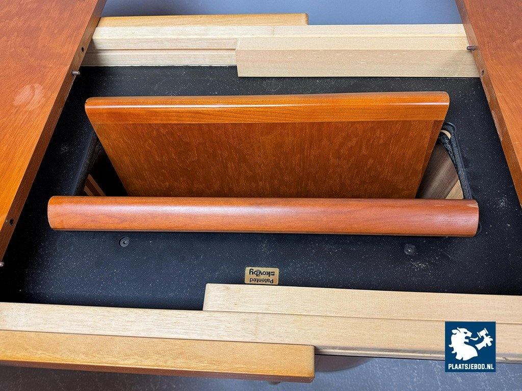 The design is highly functional and showcases classic Danish craftsmanship, combining solid wood elements with high-quality veneer. The leg construction is specifically designed to maximise legroom, preventing chairs from being obstructed when seated. A timeless Mid-Century dining table that blends practicality with refined Scandinavian aesthetics. Dimensions: Height 73 cm, Width 135–185 cm, Depth 102 cm