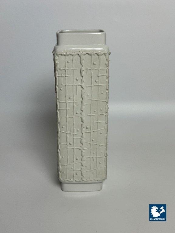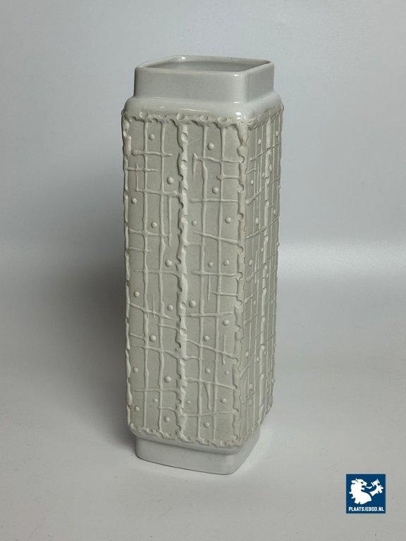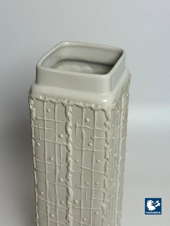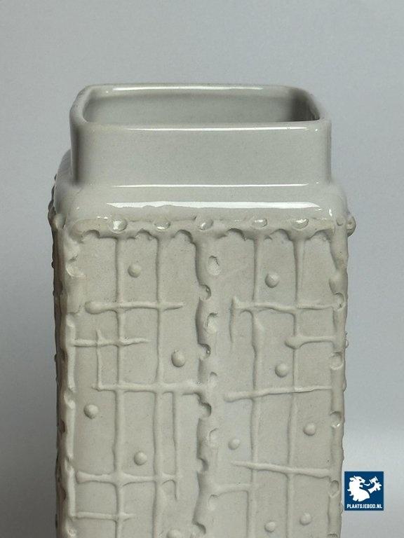Lot 305-011-V025-S1: Mid-Century Square White Ceramic Vase with Graphic Pattern, Germany, 1960s. Model 672/2.