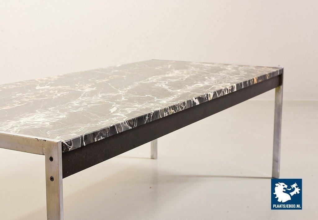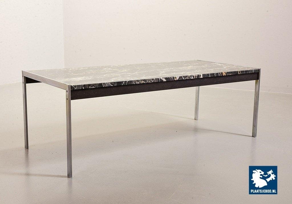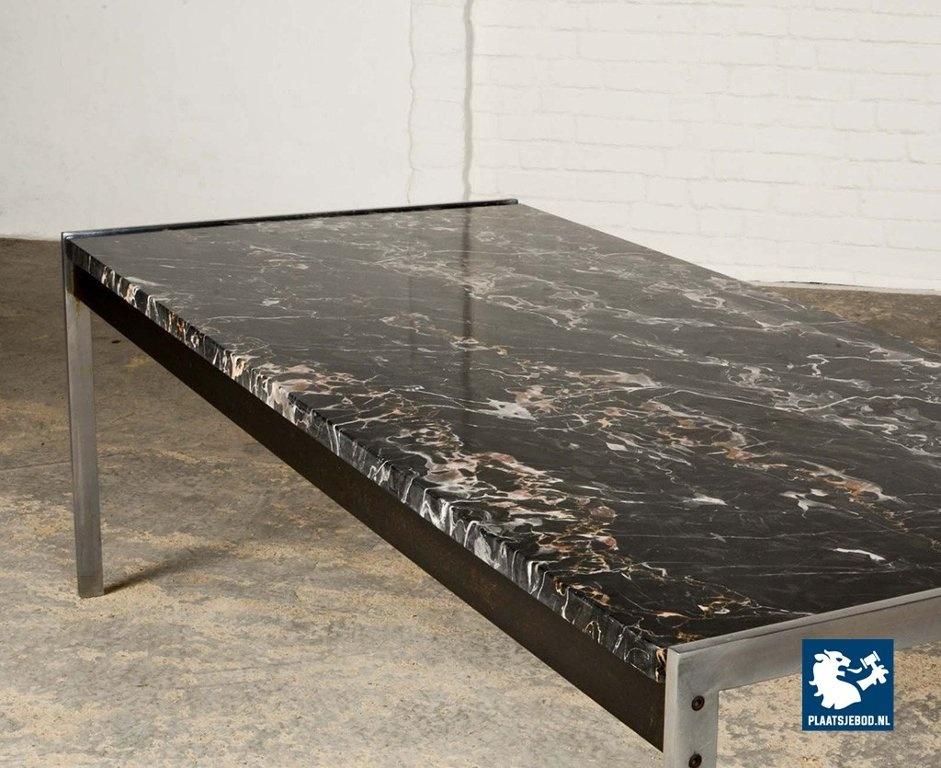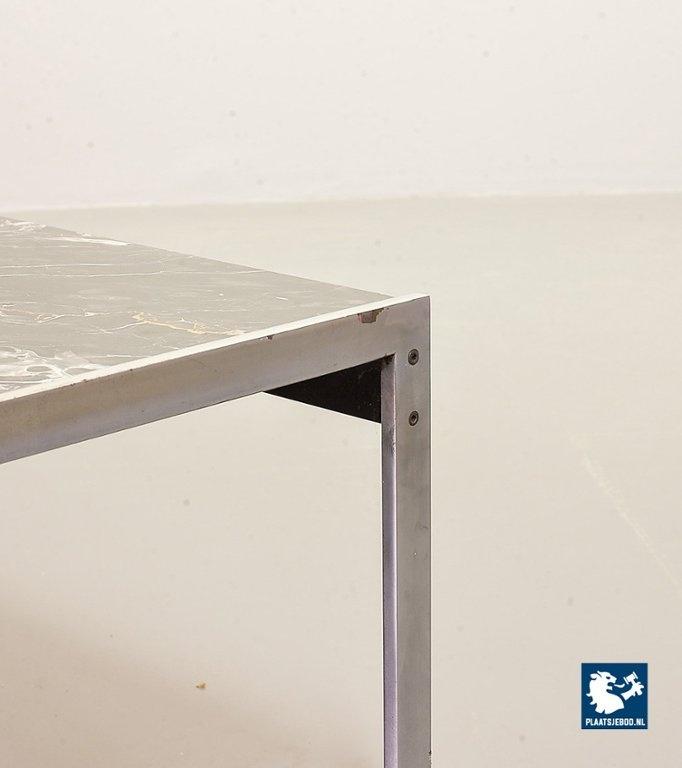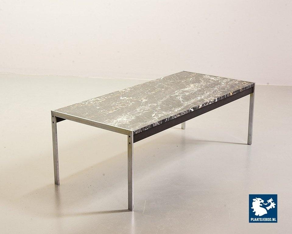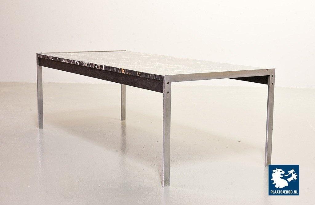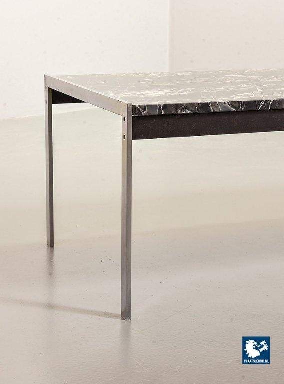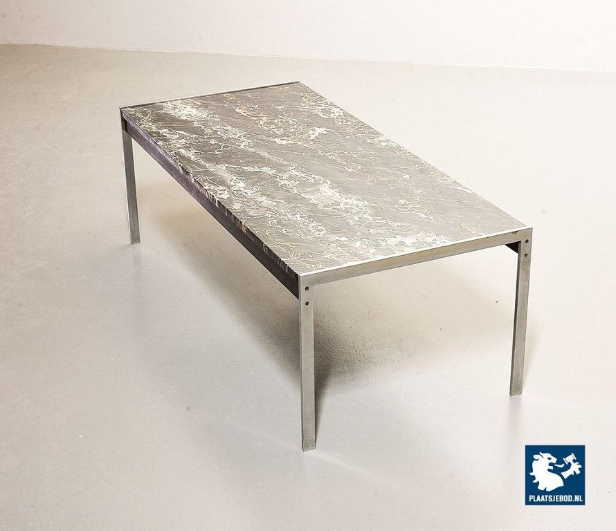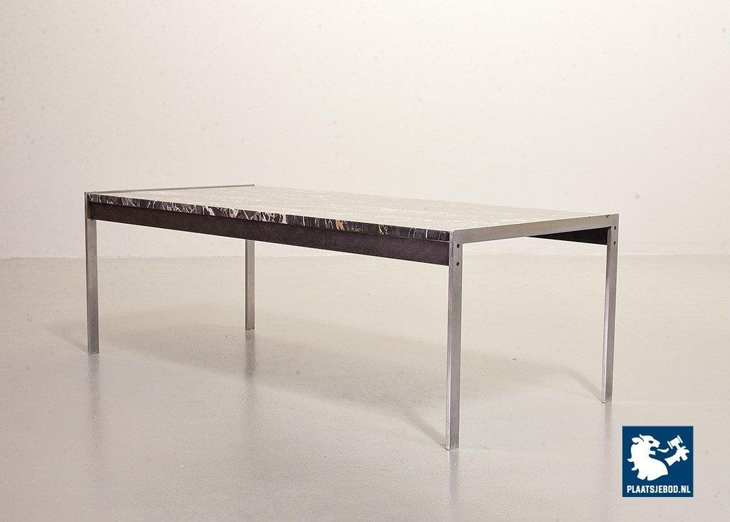 Lot 305-167-CT007-S3: Minimalistic and Exclusive Mid-Century Kho Liangh Black Italian Marble and Brushed Steel Coffee Table by Artifort. The Netherlands, 1960s.