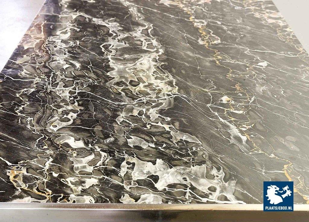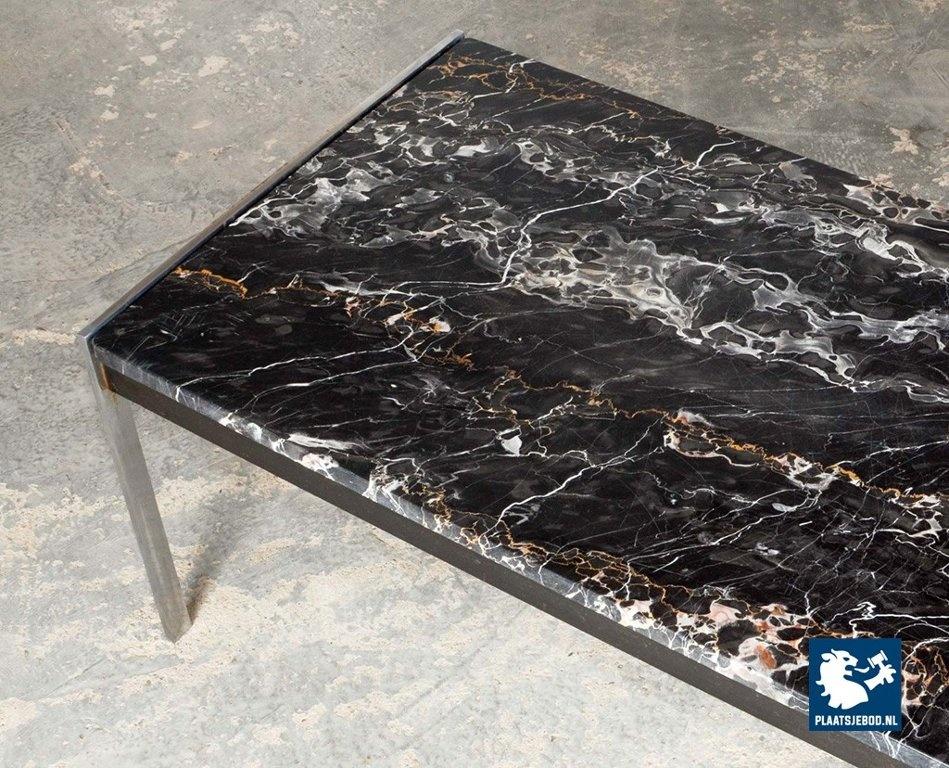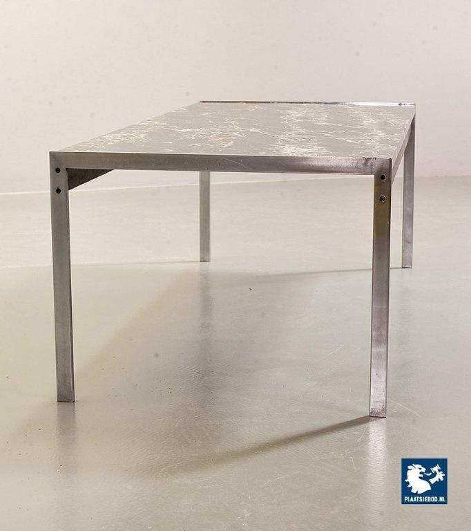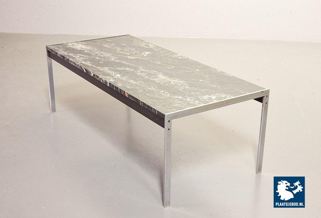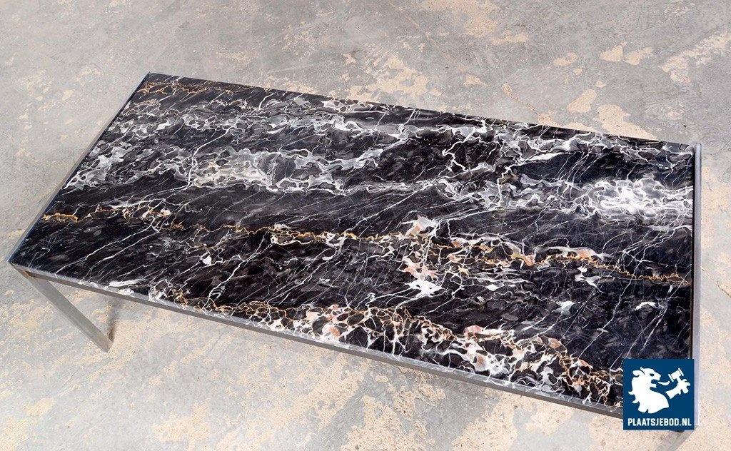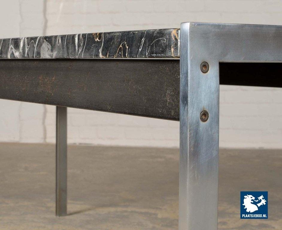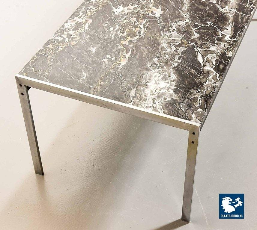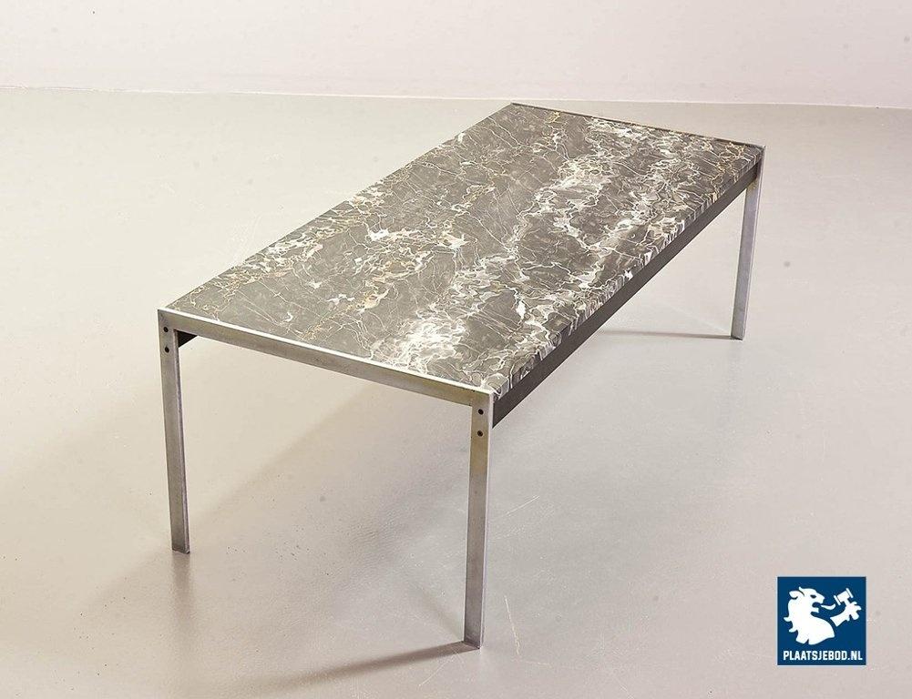 Lot 305-167-CT007-S3: Minimalistic and Exclusive Mid-Century Kho Liangh Black Italian Marble and Brushed Steel Coffee Table by Artifort. The Netherlands, 1960s.