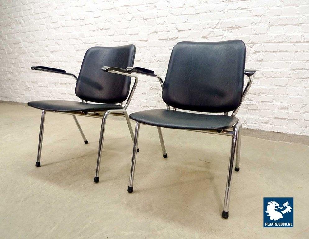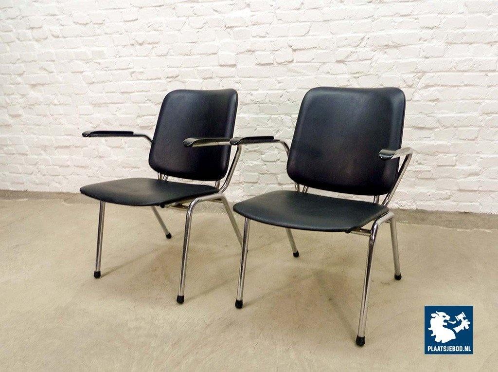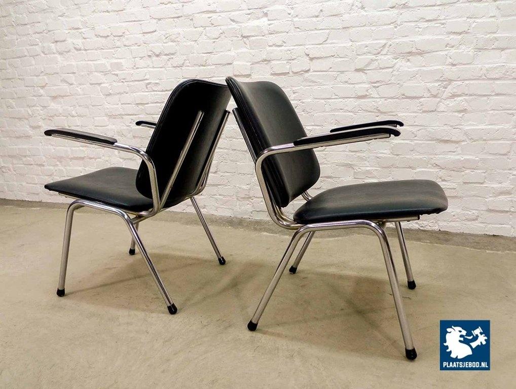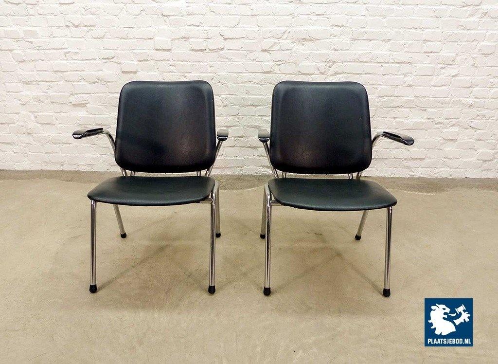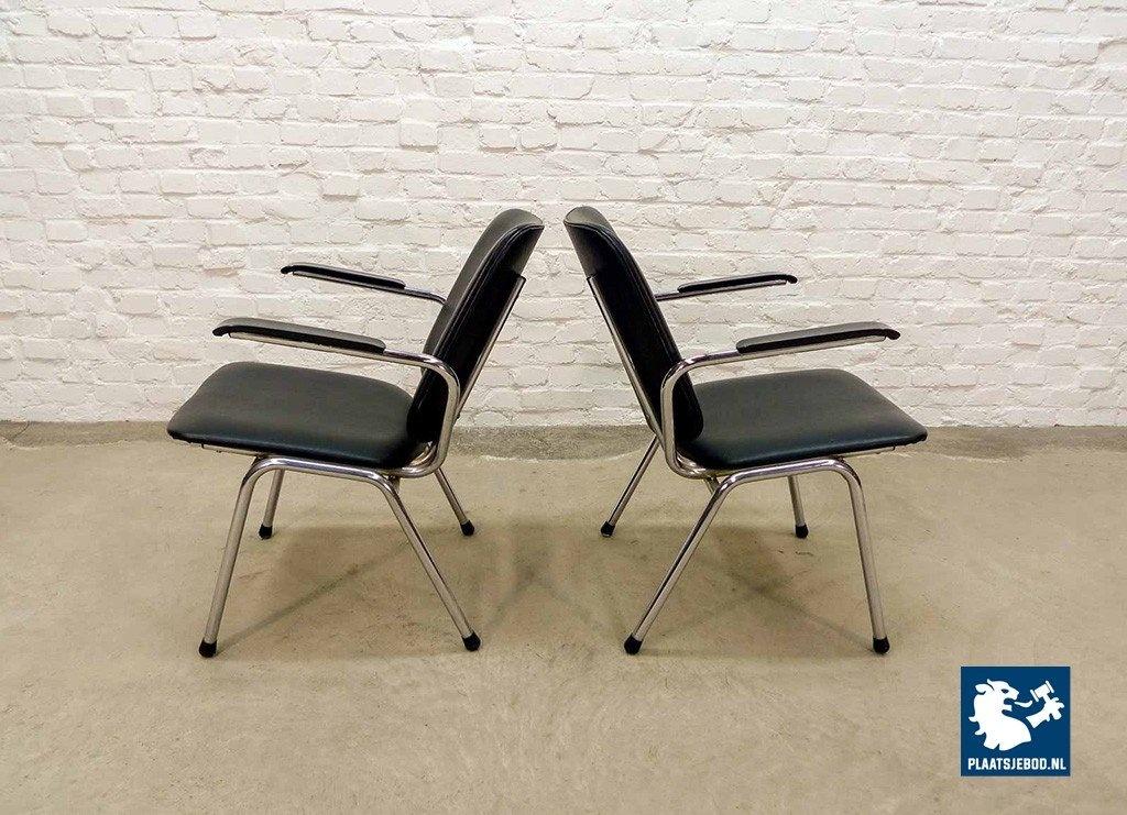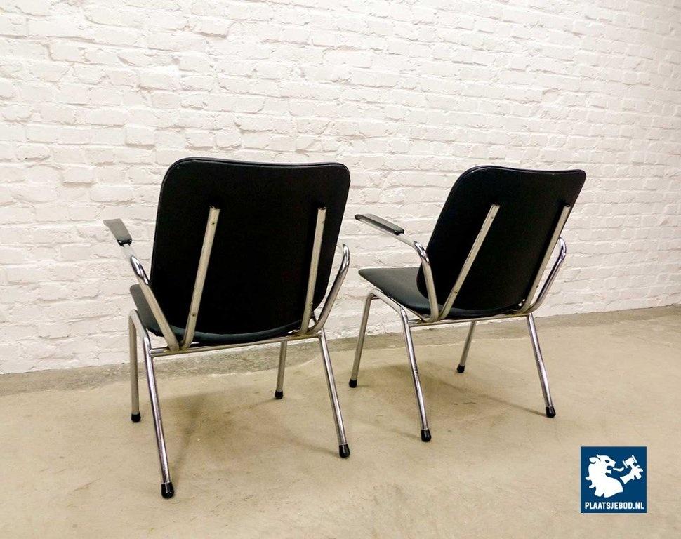 Lot 305-171-CH105: Pair of Chrome and Black Leatherette Dutch Design Gispen Armchairs by Martin de Wit, The Netherlands 1960s.