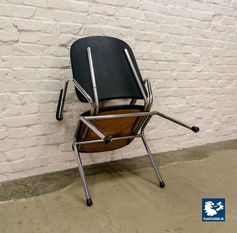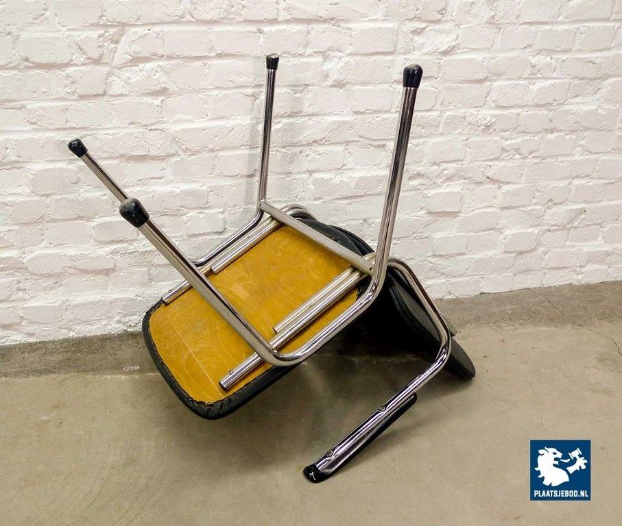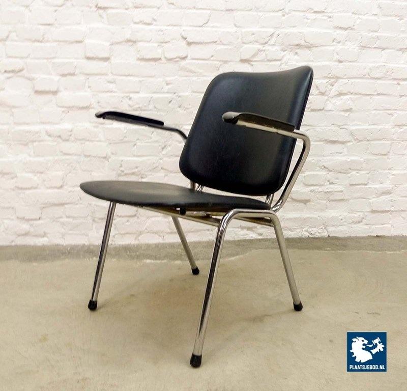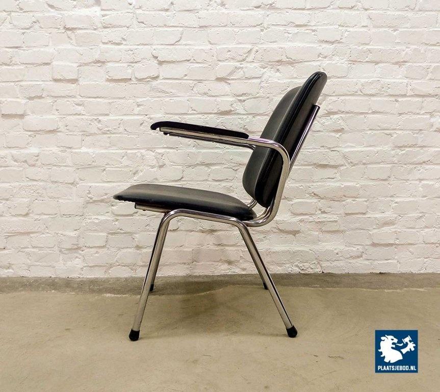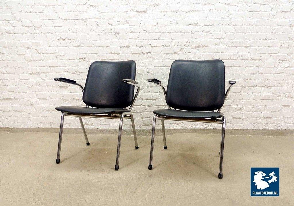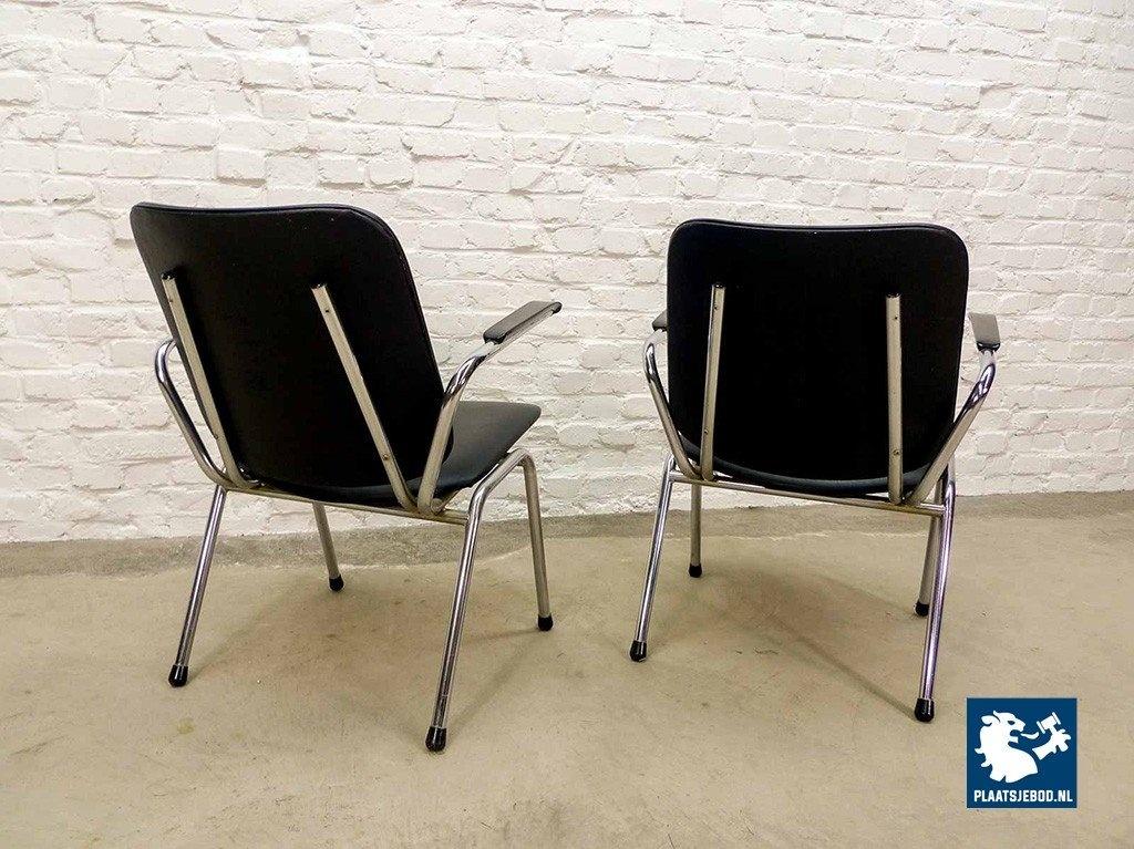 Lot 305-171-CH105: Pair of Chrome and Black Leatherette Dutch Design Gispen Armchairs by Martin de Wit, The Netherlands 1960s.