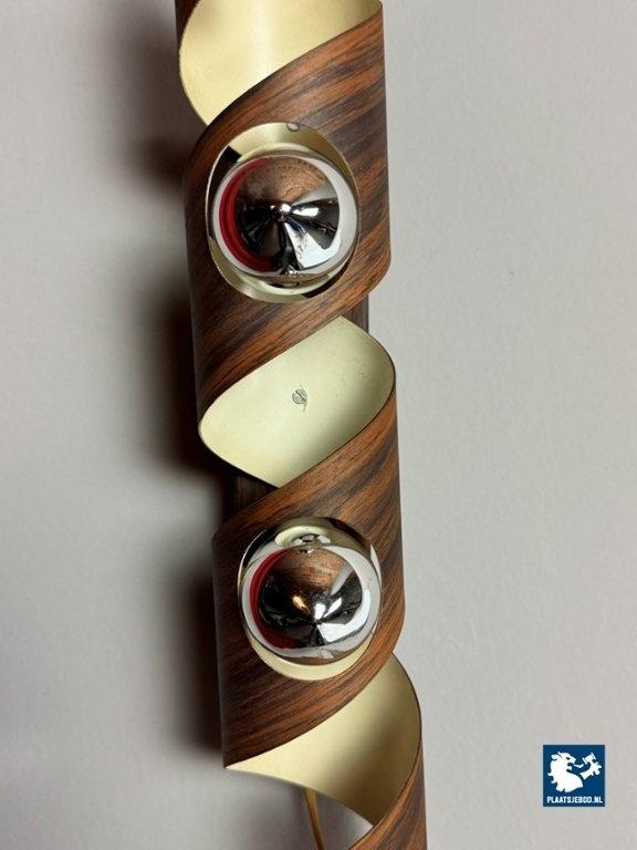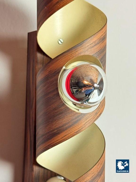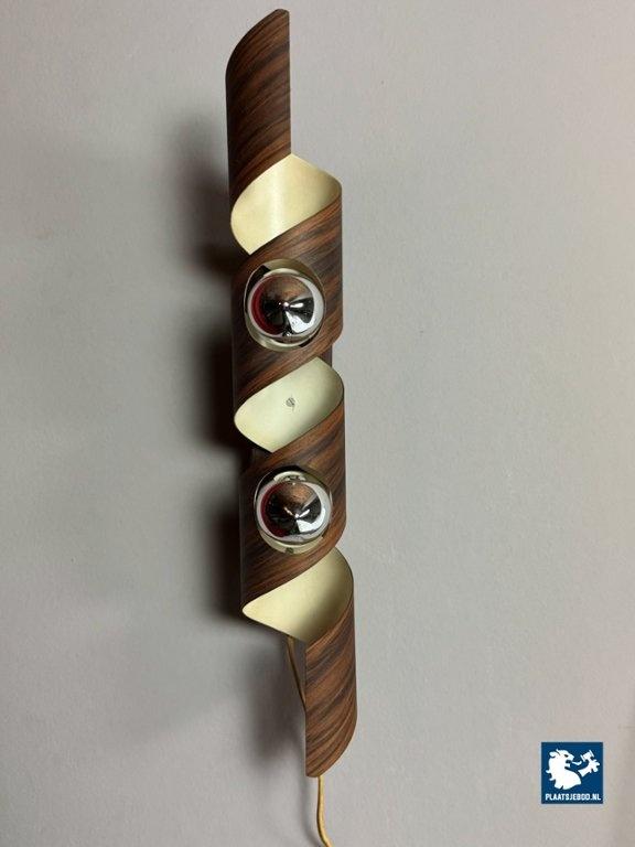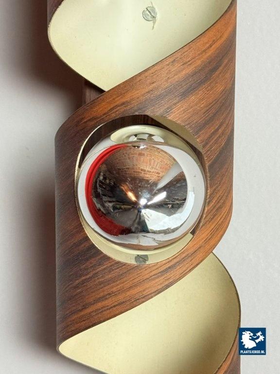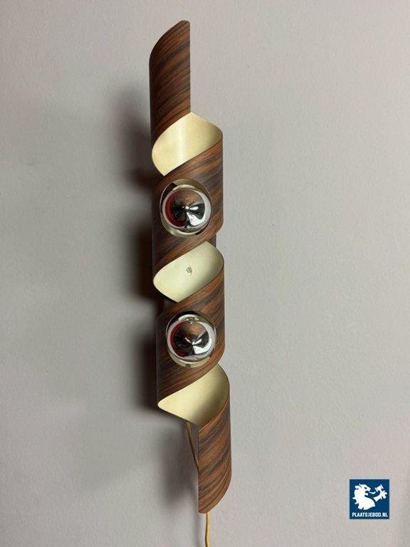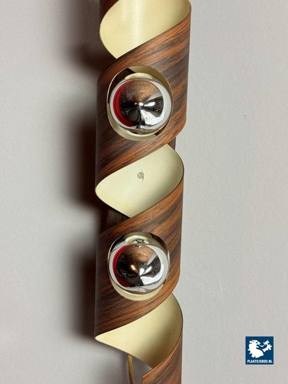 Lot 311-274-213-WL: Raak Spiral Wall Lamp with Wood-Effect Finish – Dutch Mid-Century Design, 1970s