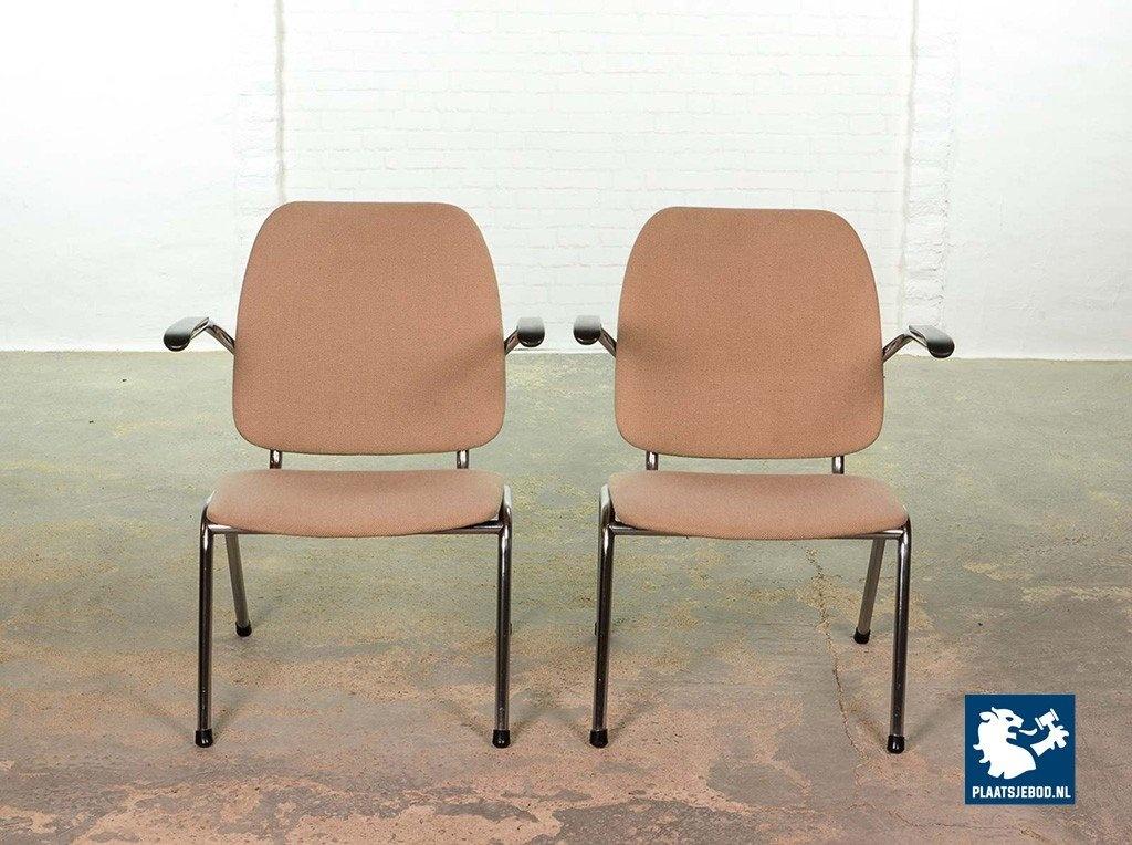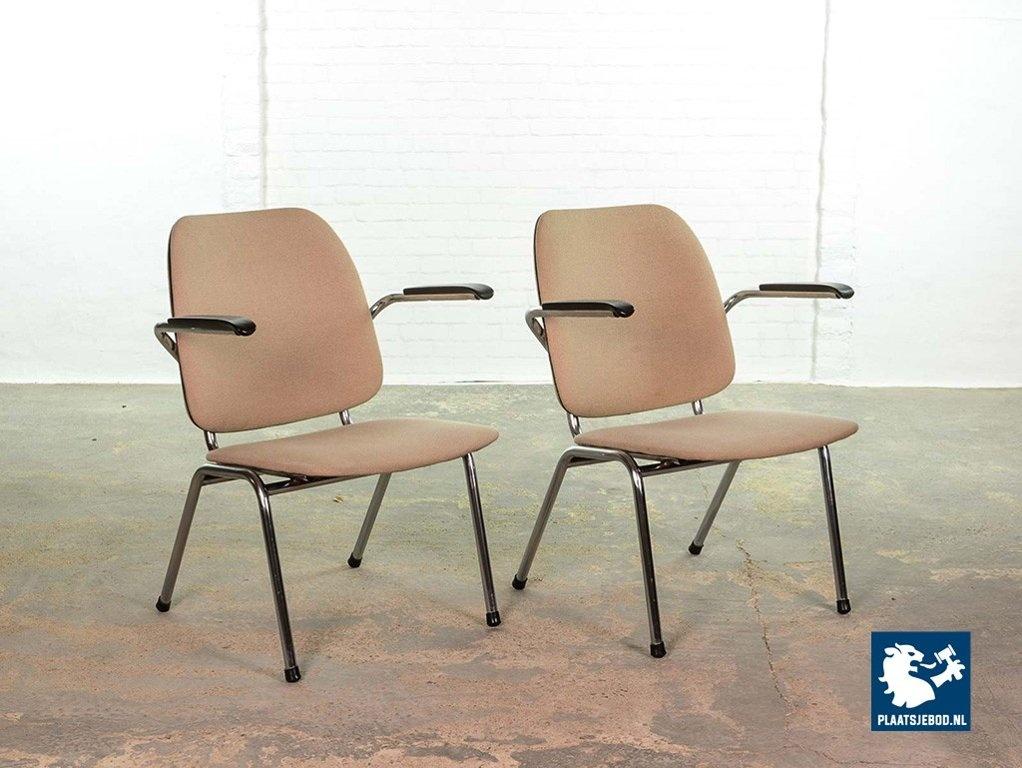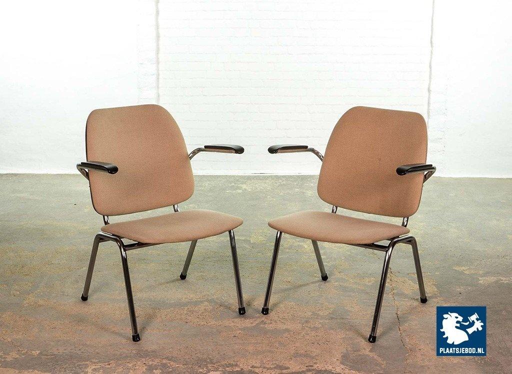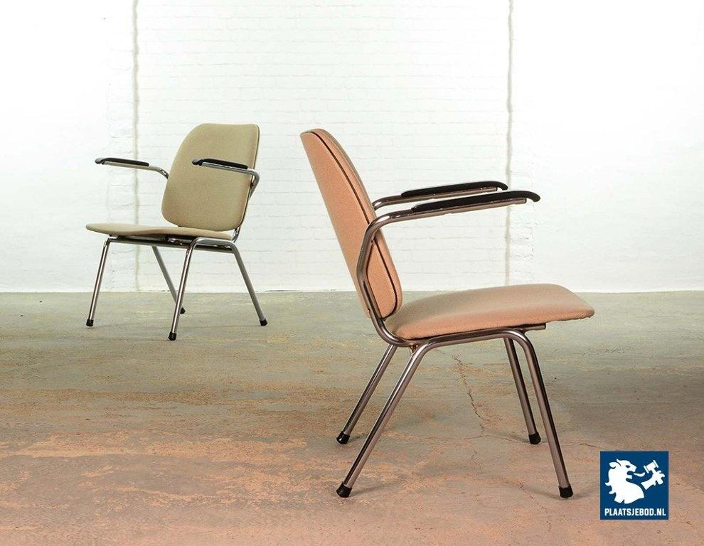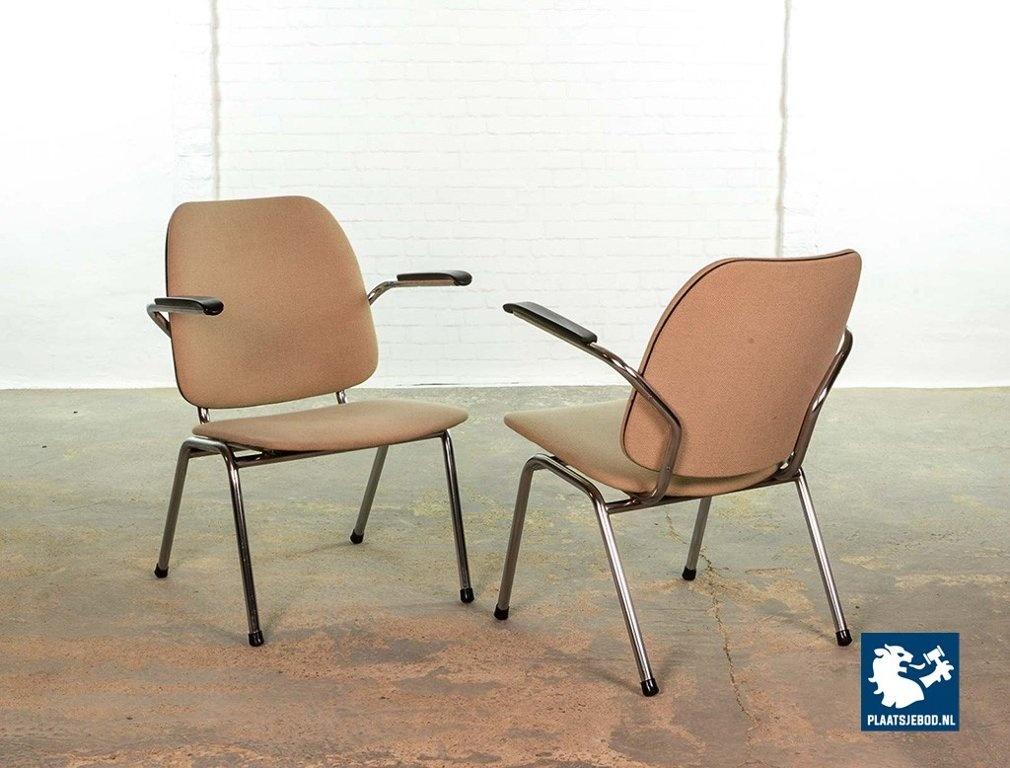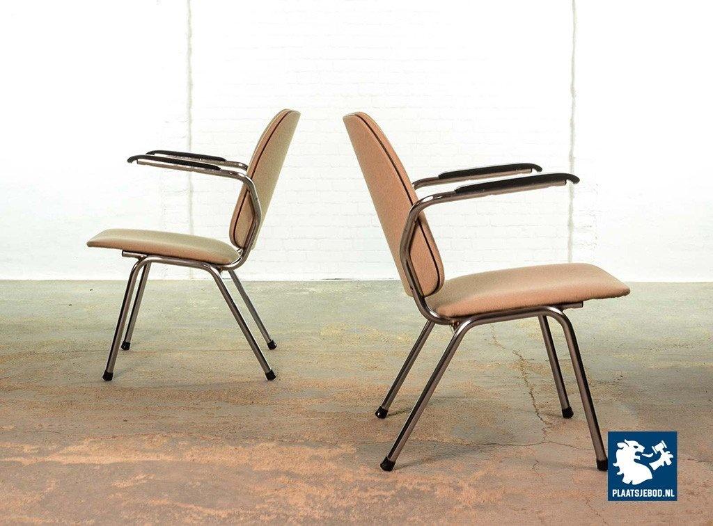 Lot 305-102-CH045-C2b: Set of 2 Mid-Century Dutch Design Gispen armchairs by Martin de Wit on Chrome Steel Frame with Sandy Fabric Upholstery and Bakelite Armrests, The Netherlands 1960s.