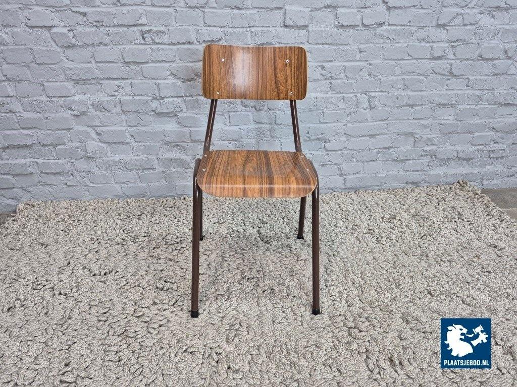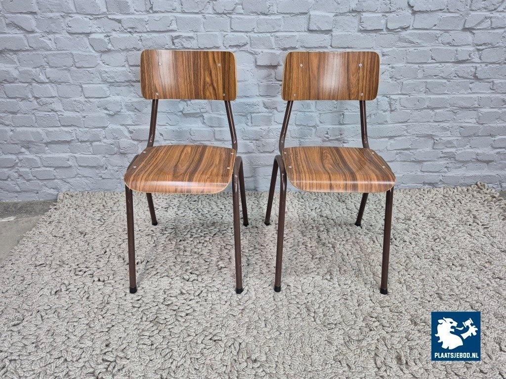 Lot 311-171-909CH-C1b: Set of 2 Vintage Design Kitchen Chairs with Faux Wood Formica and Brown Lacquered Frame, The Netherlands, 1960s