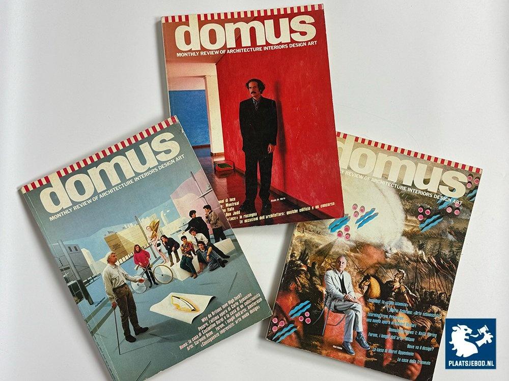 Set of 3 original vintage issues of Domus Magazine, dating from 1983. This bundle includes the following issue numbers: 637, 640 and 645. Domus is internationally regarded as one of the most influential monthly reviews of architecture, interior design, and art, and has played a key role in shaping modern architectural and design discourse. Domus was founded in 1928 by the architect Gio Ponti, together with publisher Gianni Mazzocchi — two leading figures in Italian architecture and publishing whose collaboration helped establish Domus as a leading voice in 20th-century design. Issues from the 1970s reflect a period of architectural experimentation and cultural transition. Typical content includes contemporary architectural projects, urban and residential design, theoretical essays, interior concepts, and explorations of new materials and construction methods, alongside contributions related to art and visual culture. Each issue is documented with individual cover photography and interior spread images, providing a clear and transparent visual overview of the condition and content of the magazines. Offered as a cohesive set, these original vintage issues are no longer in print and are highly sought after by collectors, architects, designers, and scholars. Together, they form a valuable reference archive capturing the spirit of late 20th-century European and international design culture.