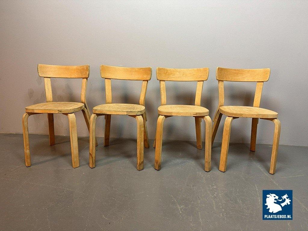 Lot 305-043-CH305-C2-b: Set of 4 First Edition Alvar Aalto Model 69 Plywood Chairs for Artek, Finland, 1940s.