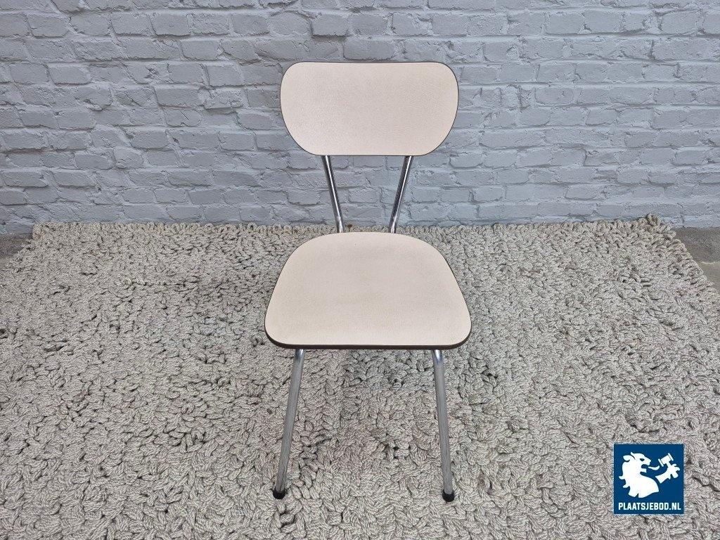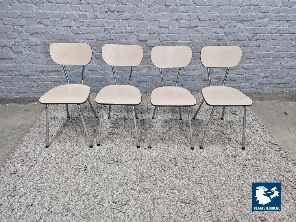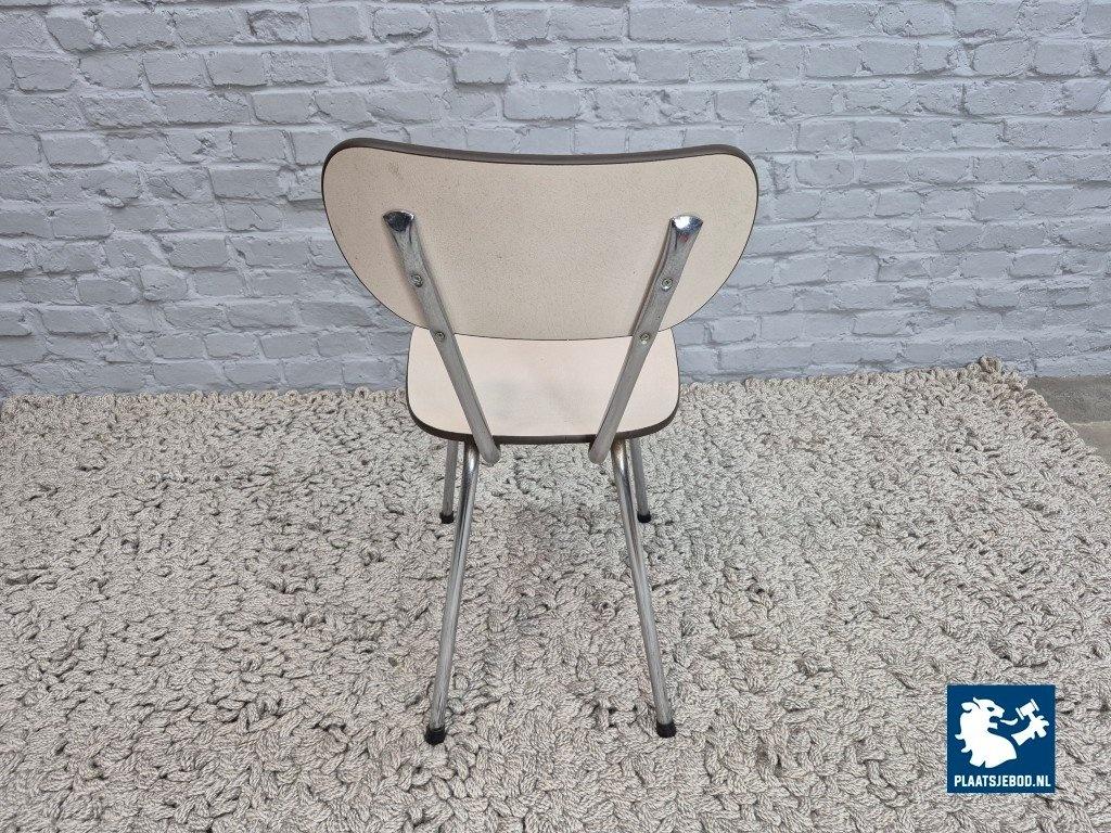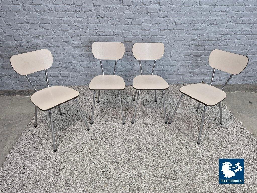 Set of four vintage design kitchen chairs manufactured by Brabantia in The Netherlands, dating from the 1960s. The chairs feature cream-colored Formica seats and backrests, combined with chromed tubular steel frames — a classic and functional design typical of Dutch kitchens from this period.