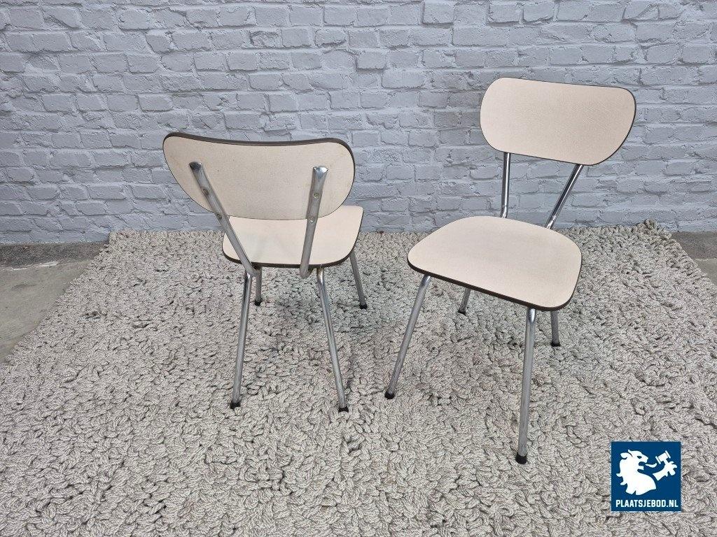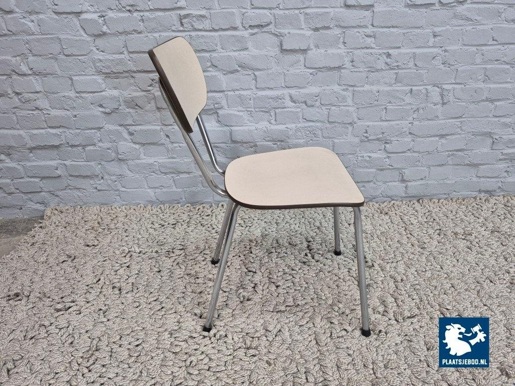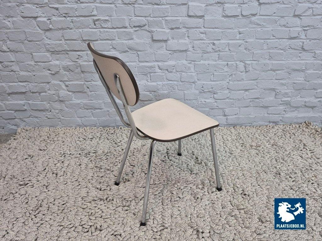 The clean, rounded shapes and practical materials reflect Brabantia’s reputation for durable, well-made household furniture. The light-colored Formica surfaces give the chairs a fresh, understated appearance, while the chrome frames provide a subtle modern contrast.