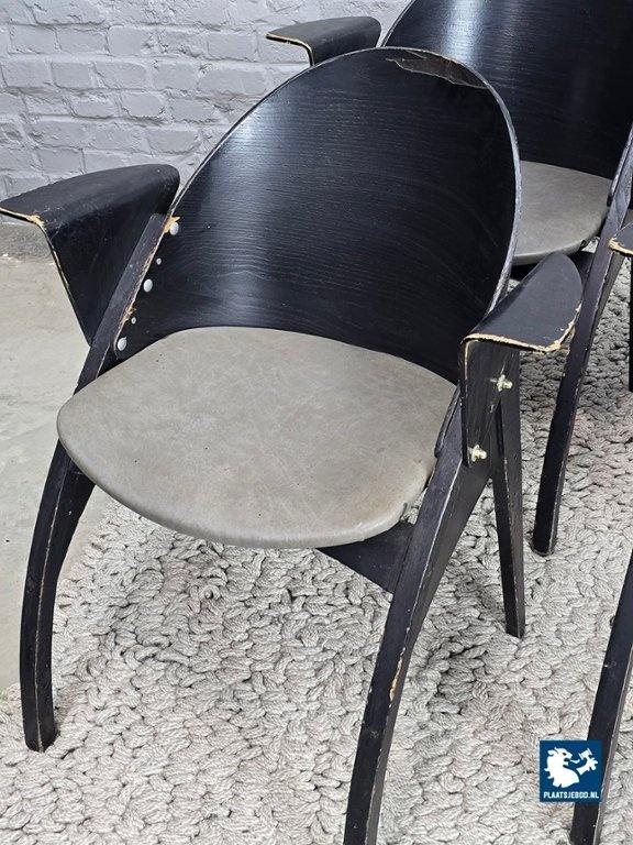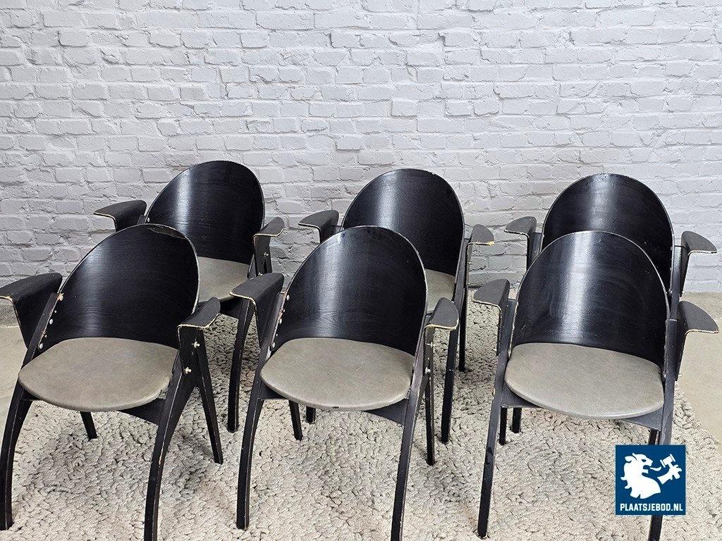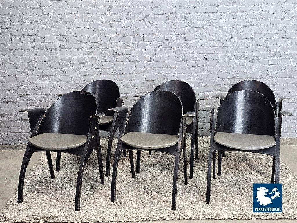 Set of six armchairs model Galateo, designed by Pascal Mourgue for Scarabat in 1980. These sculptural mid-century chairs reflect Mourgue’s distinctive design language, characterized by soft, organic lines and relaxed modern elegance. The chairs offer excellent seating comfort and embody the refined, expressive spirit of late 20th-century French design. A stylish and increasingly sought-after designer chair suitable for both contemporary and vintage-oriented interiors. The chairs need some TLC. Dimensions: Height 78 Width 68 Depth 55 cm.
