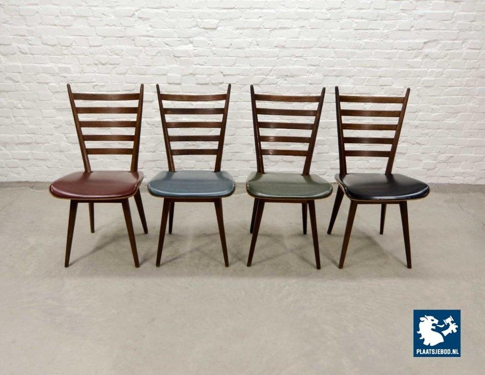 Set of four Dutch Design ‘quattro colori’ dining