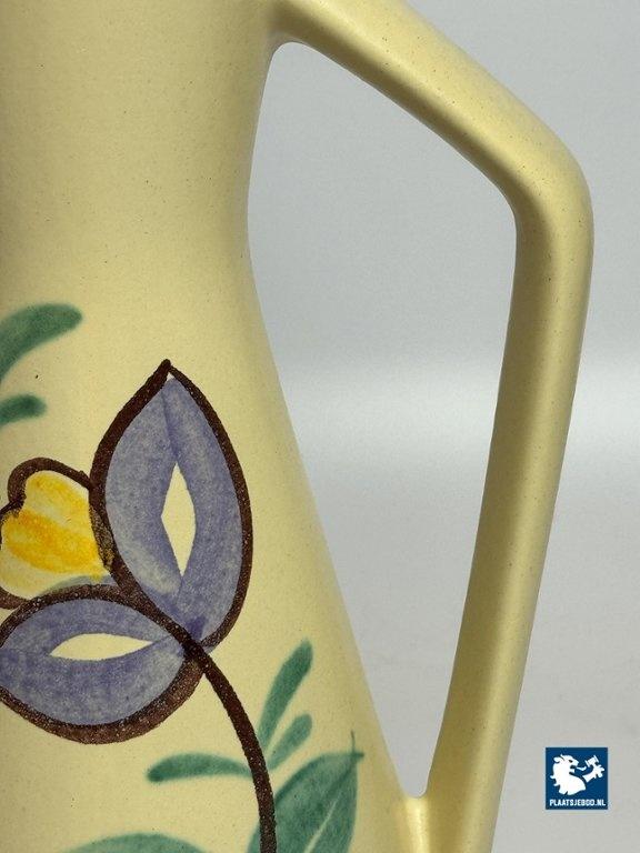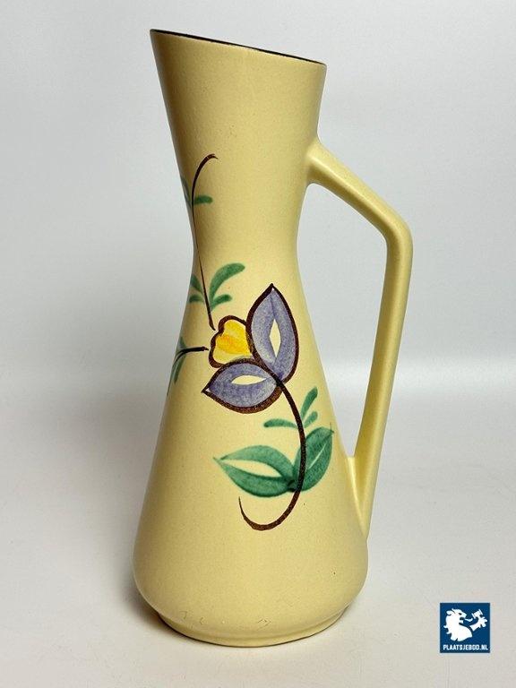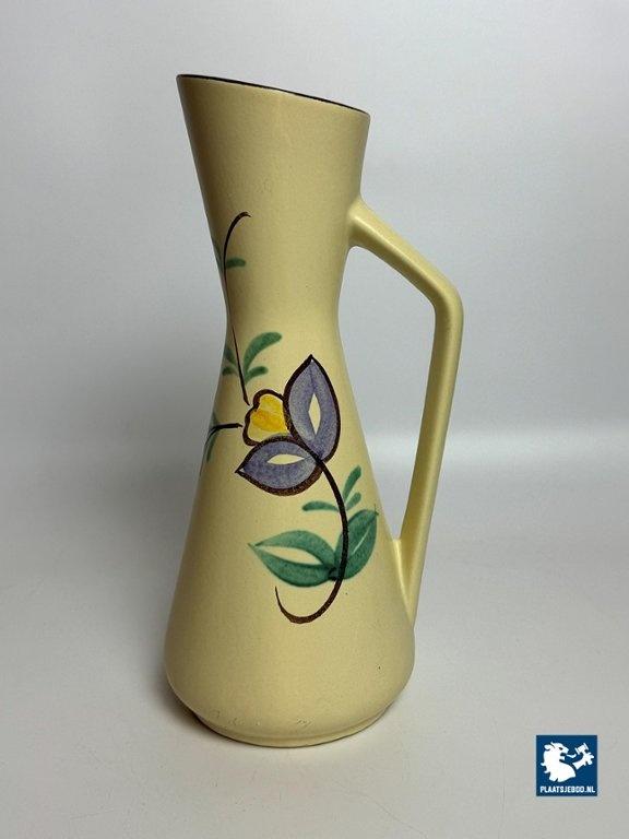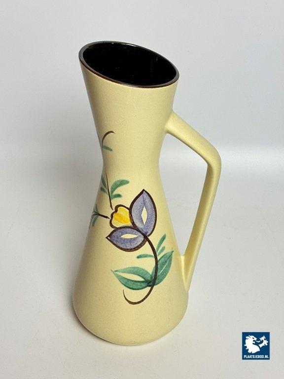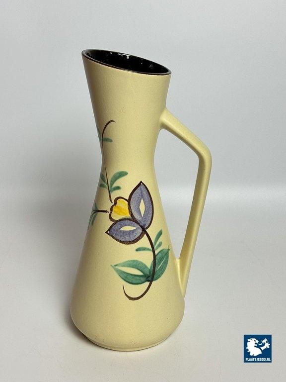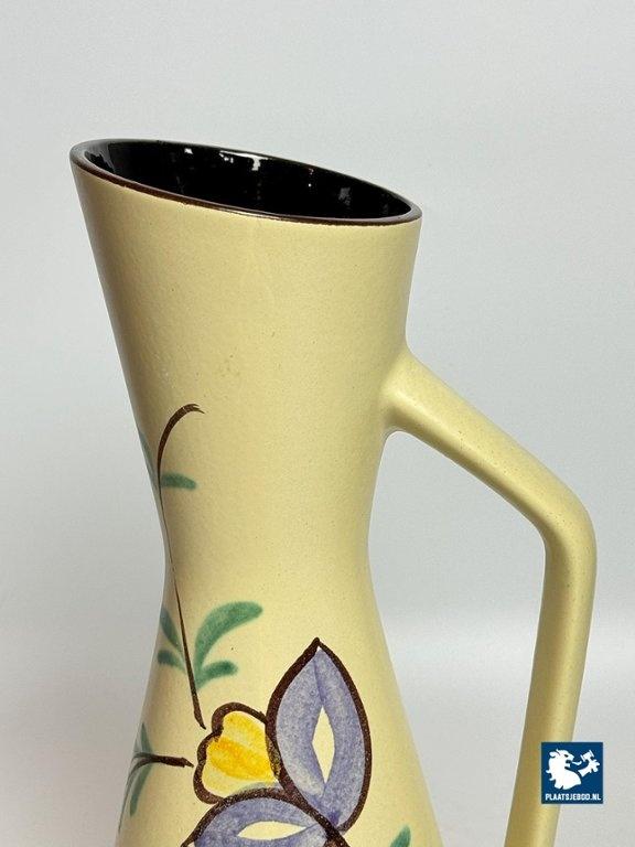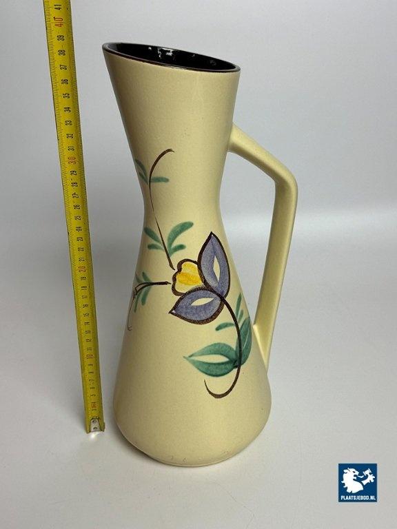 Lot 305-024-V059: Tall Vintage Ceramic Handpainted Floral Vase with Styled Handle, West-Germany 1960s. Model 272-38.