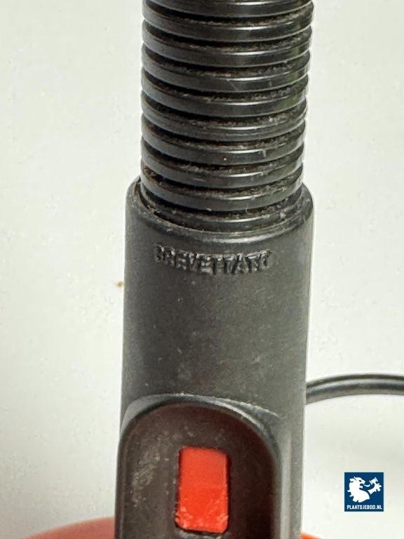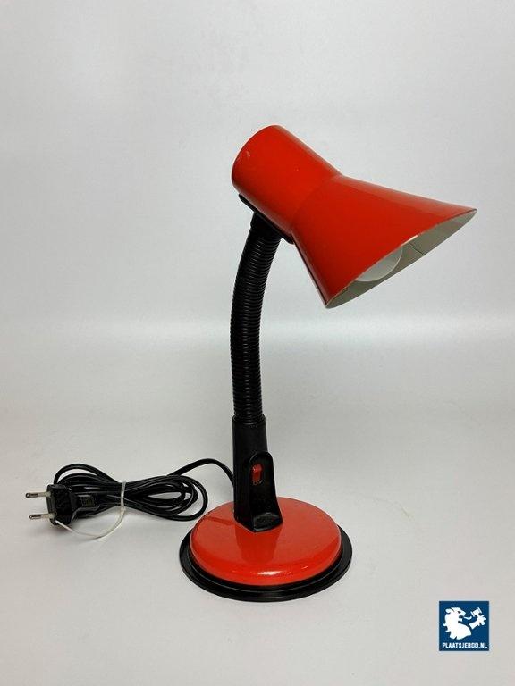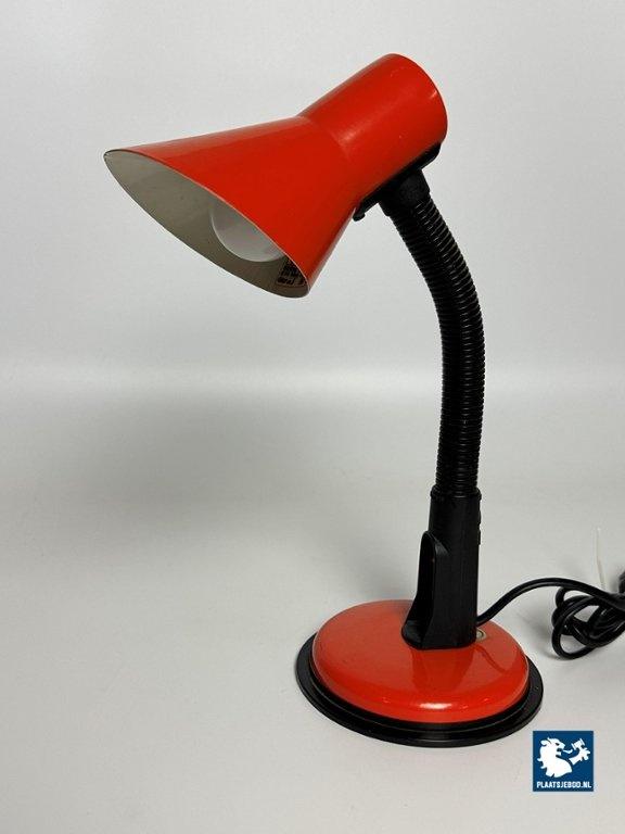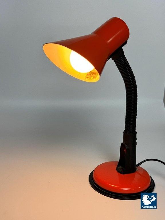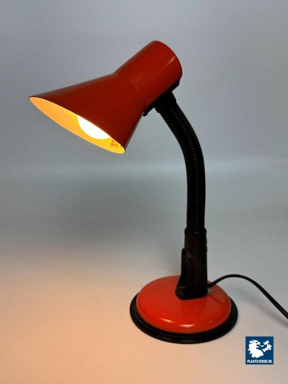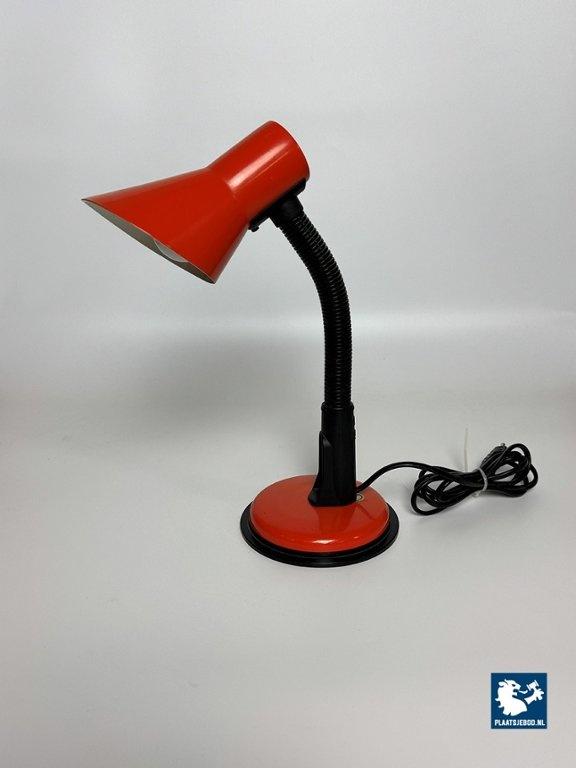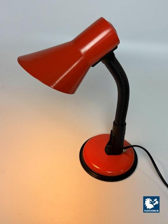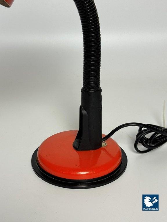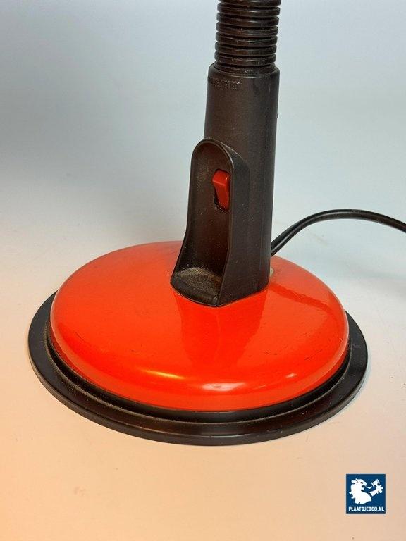 Veneta Lumi Italy, Brevattato Desk Lamp Black with Orange red Metal Foot and Shade, 1970s. Dimensions: Height 32 Width 20 cm