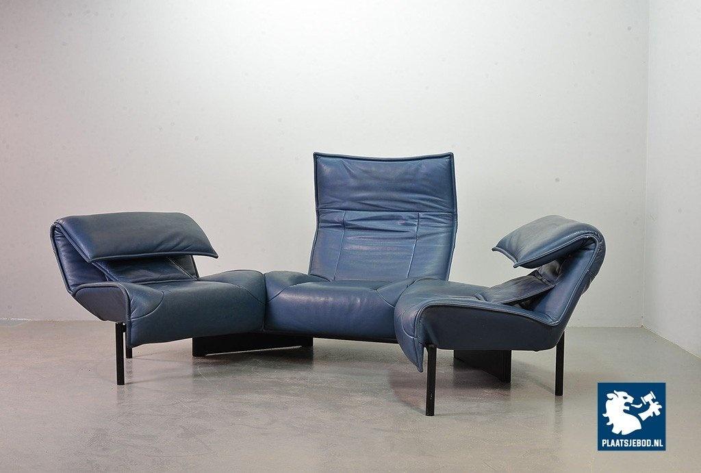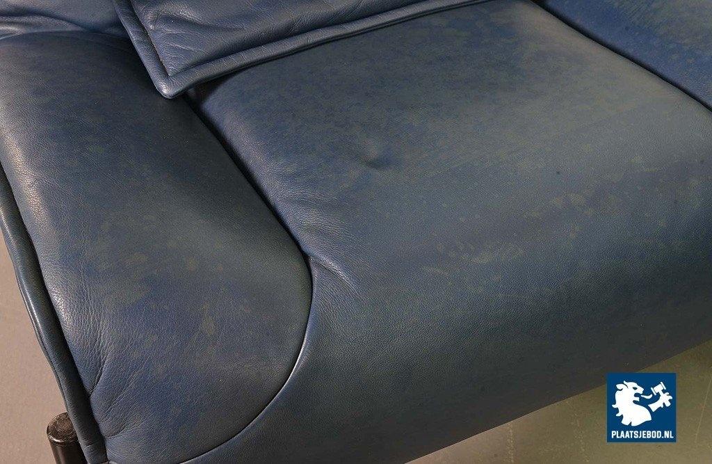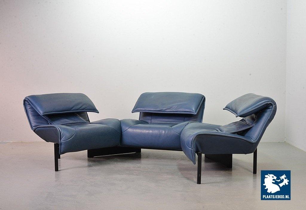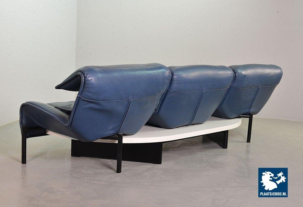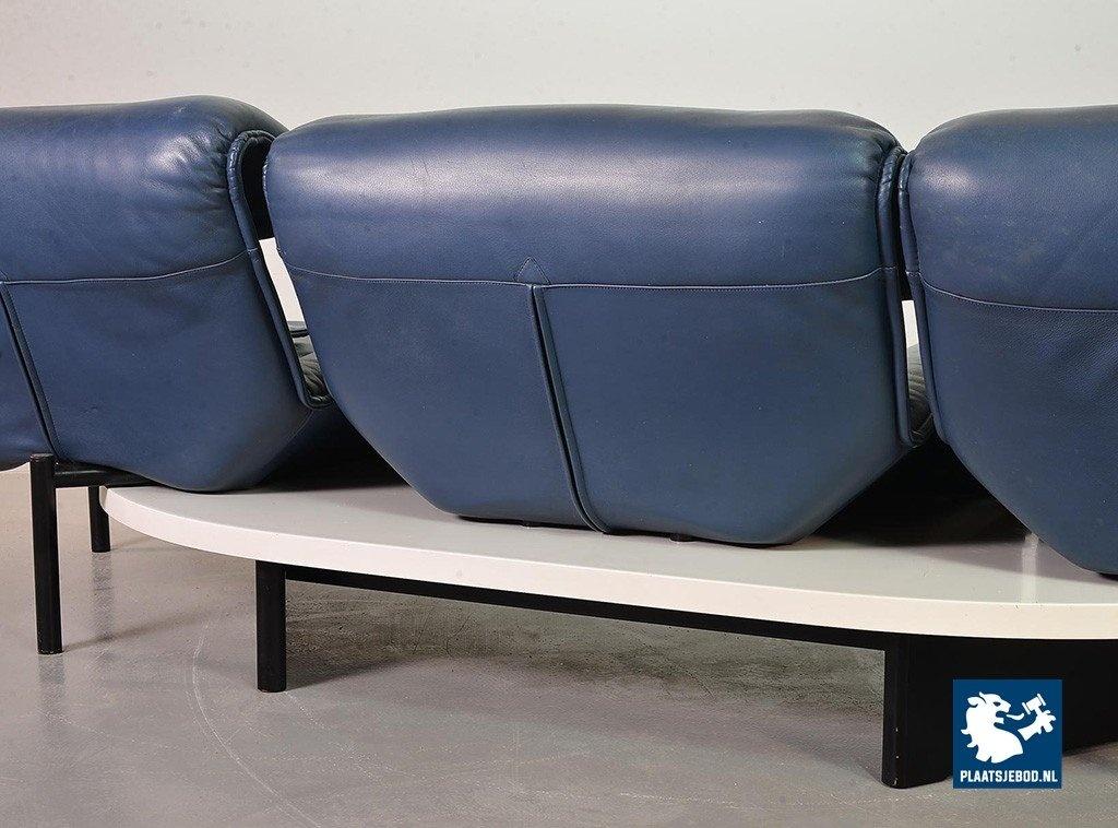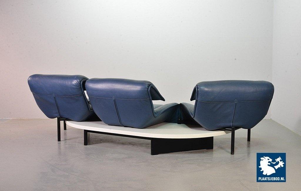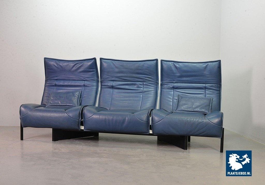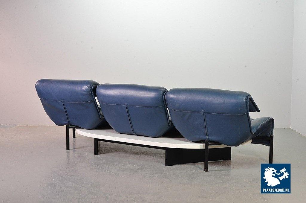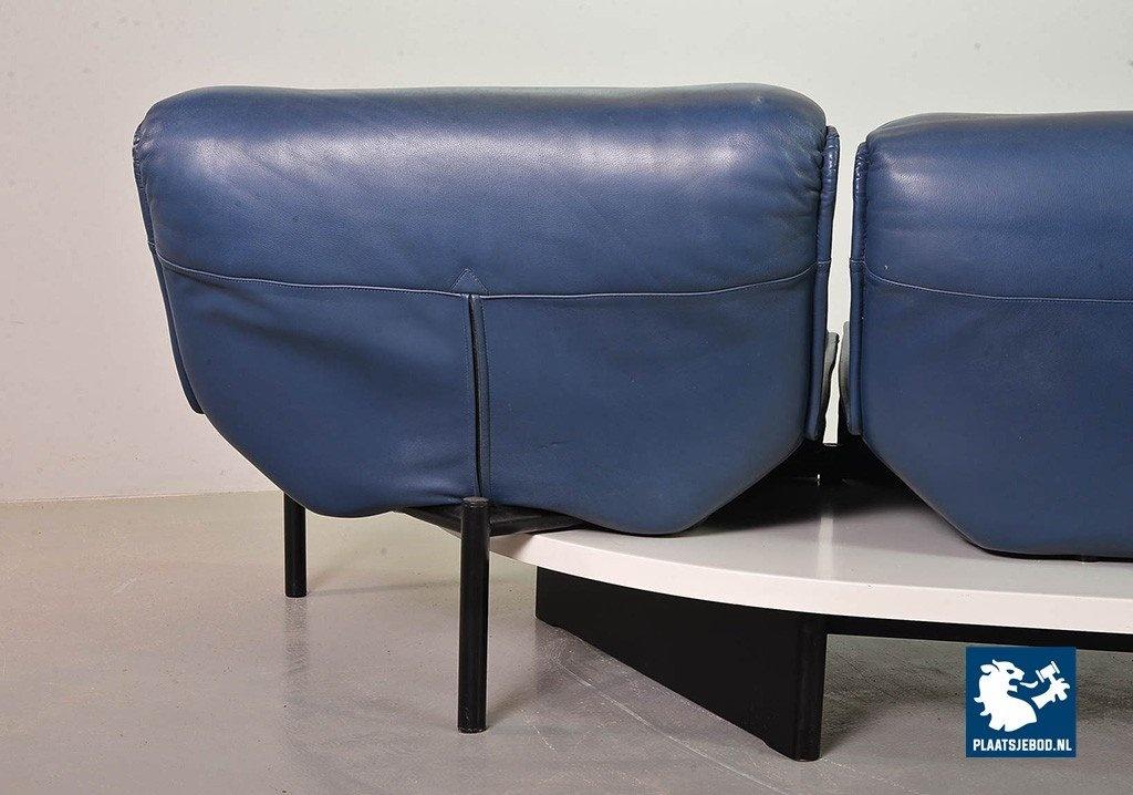 Lot 305-109-SS080-C2BSTAIRS: Vico Magistretti Mid-Century Italian Design 3-Seat Flexible ‘Veranda’ Sofa for Cassina in Petrol Blue Leather. Italy, 1980s.