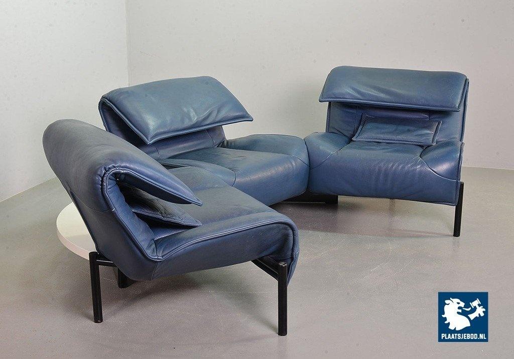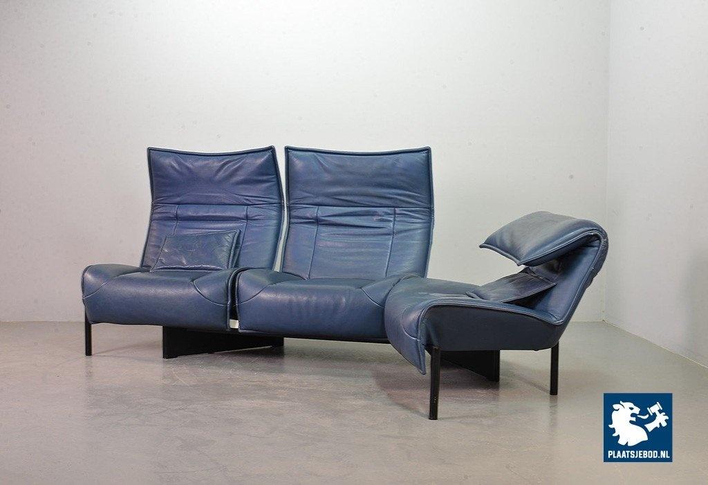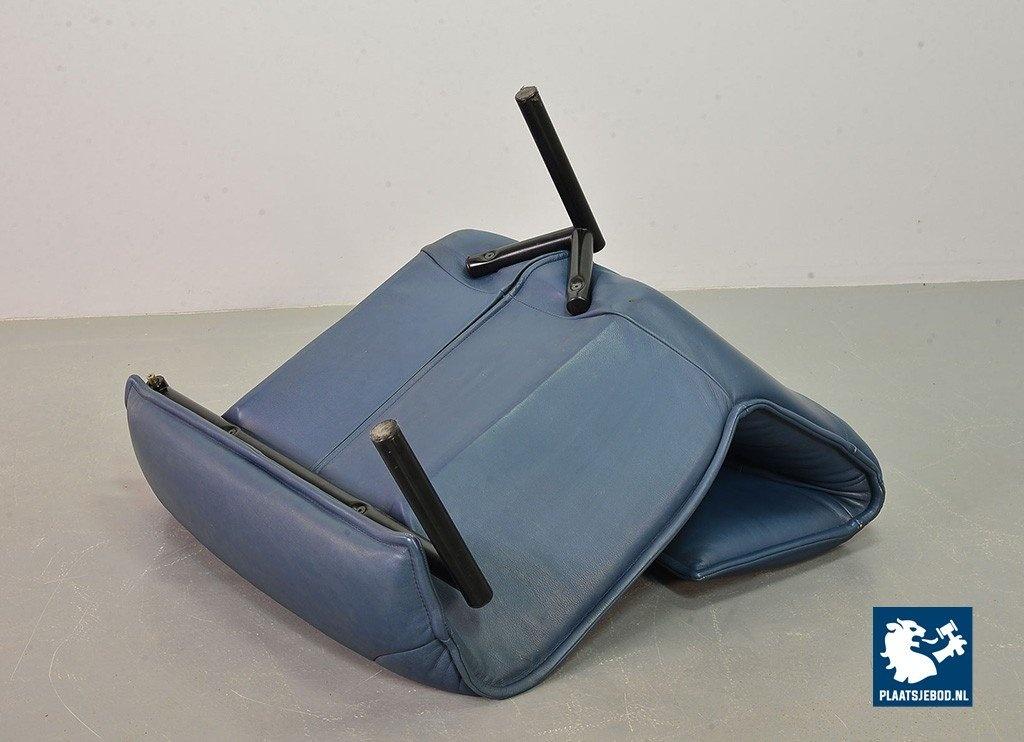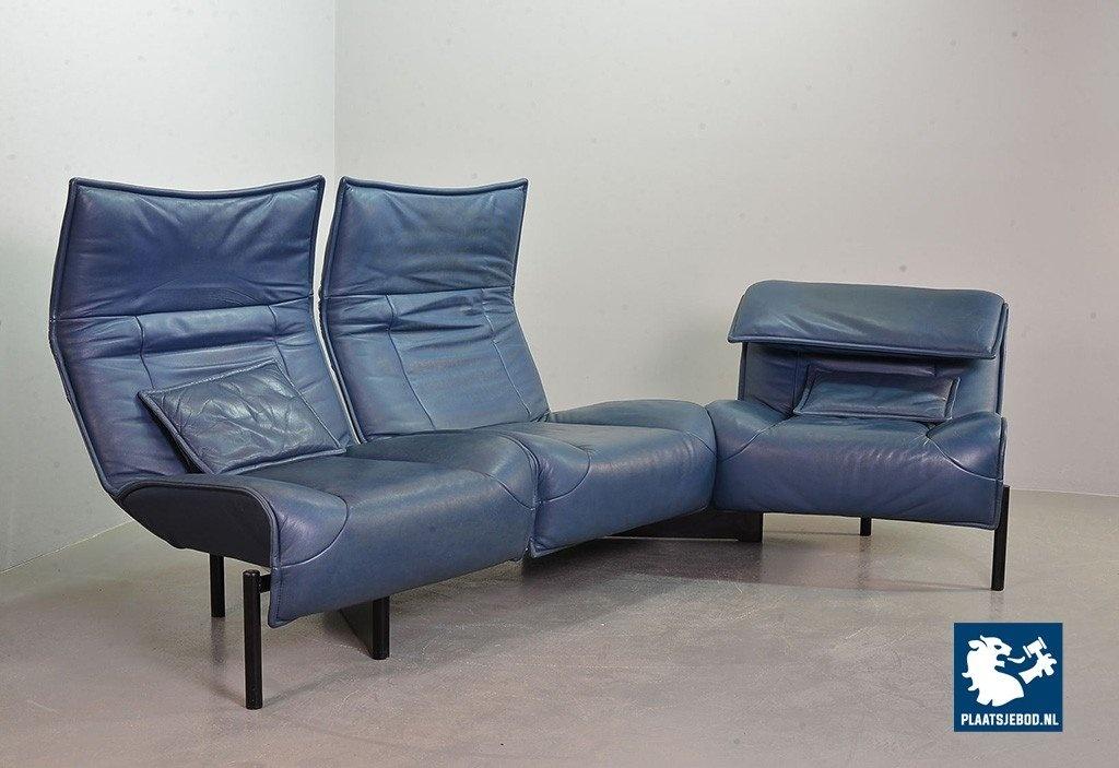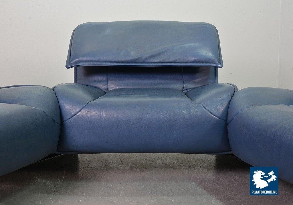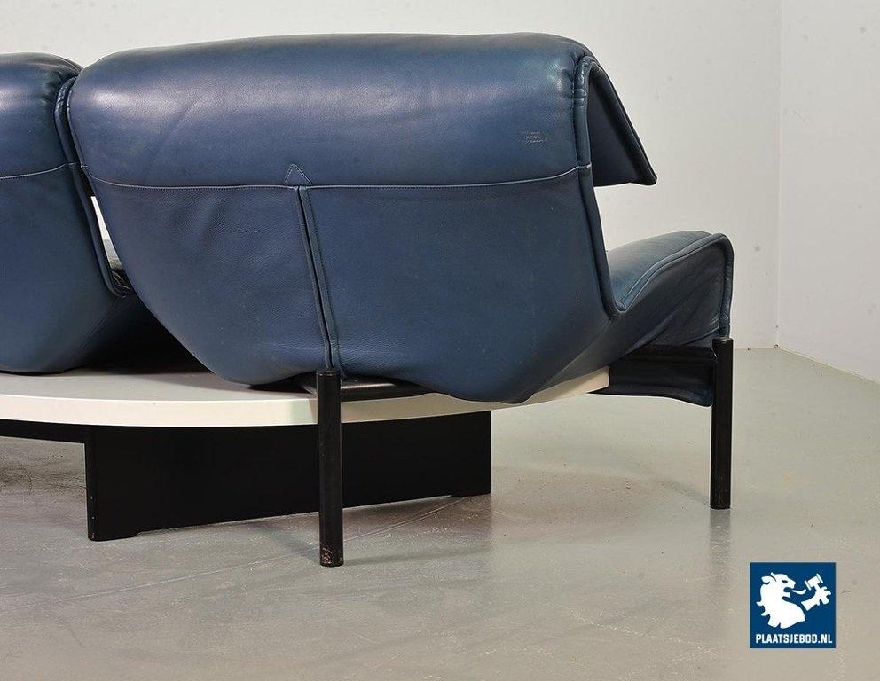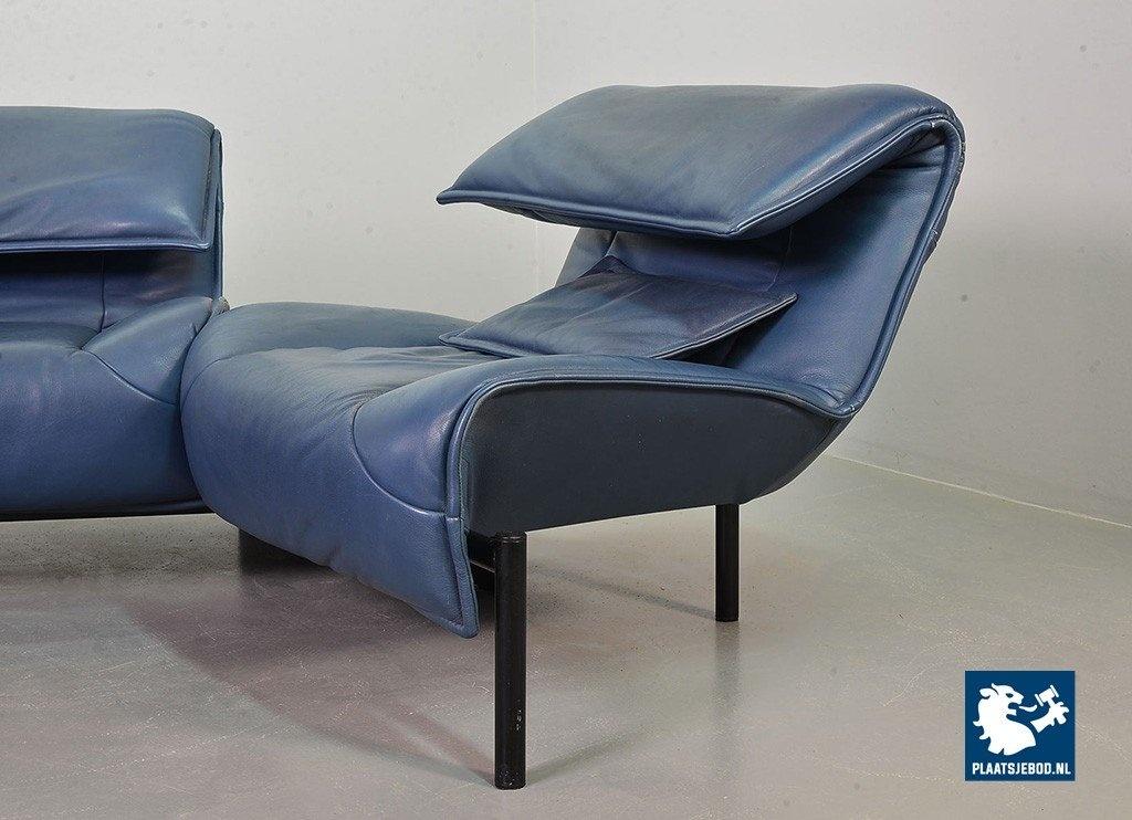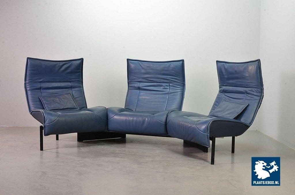 Lot 305-109-SS080-C2BSTAIRS: Vico Magistretti Mid-Century Italian Design 3-Seat Flexible ‘Veranda’ Sofa for Cassina in Petrol Blue Leather. Italy, 1980s.