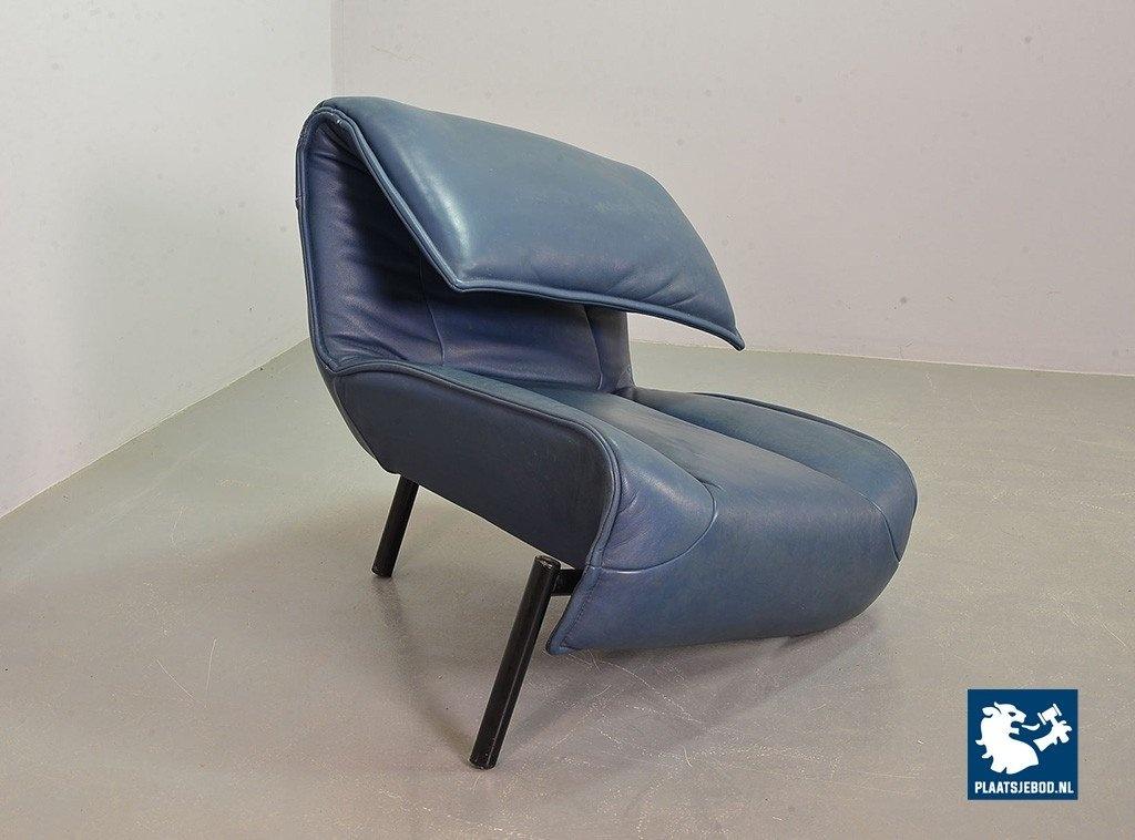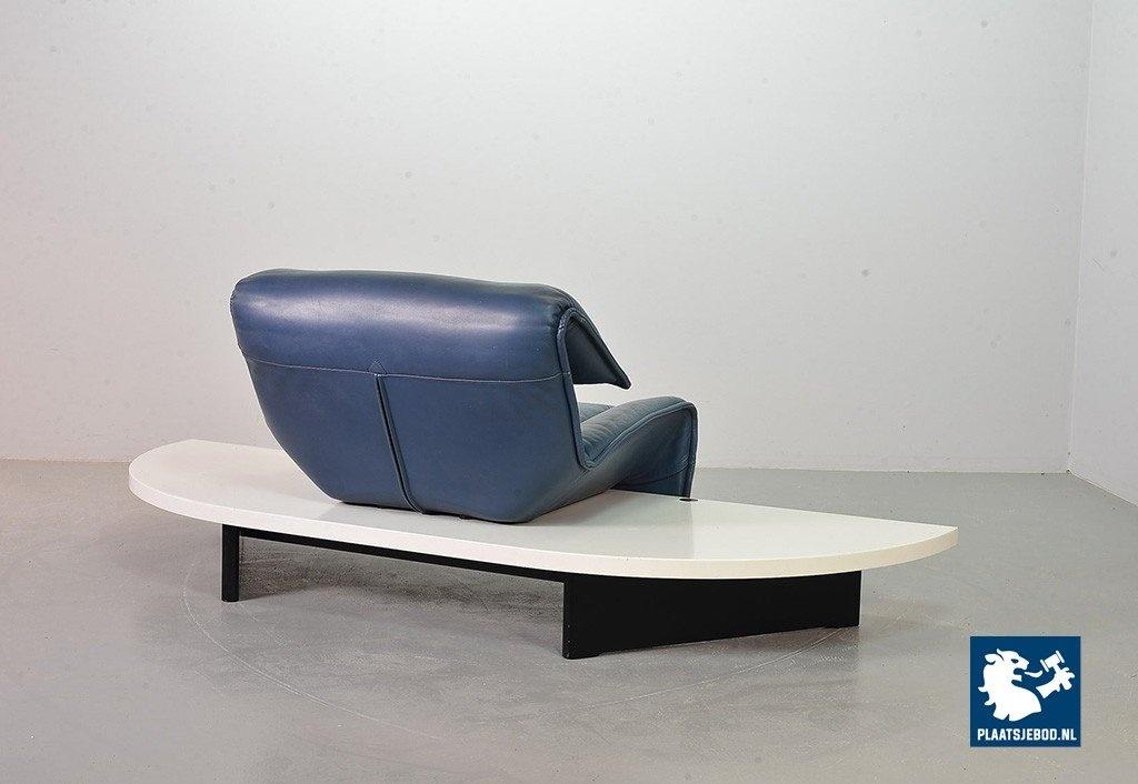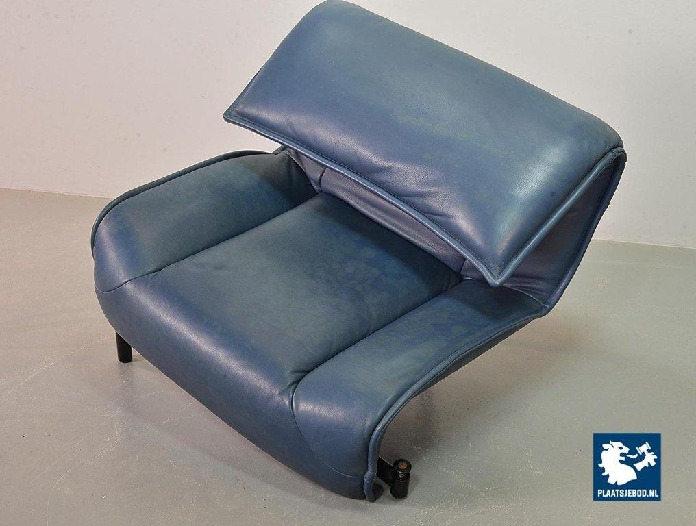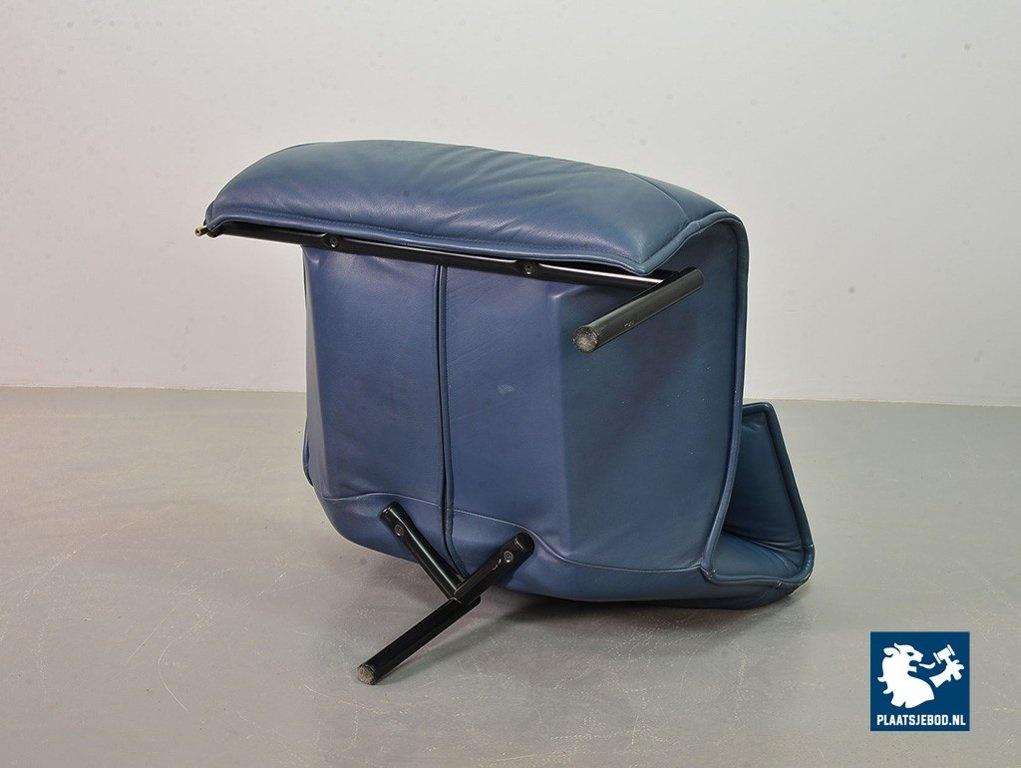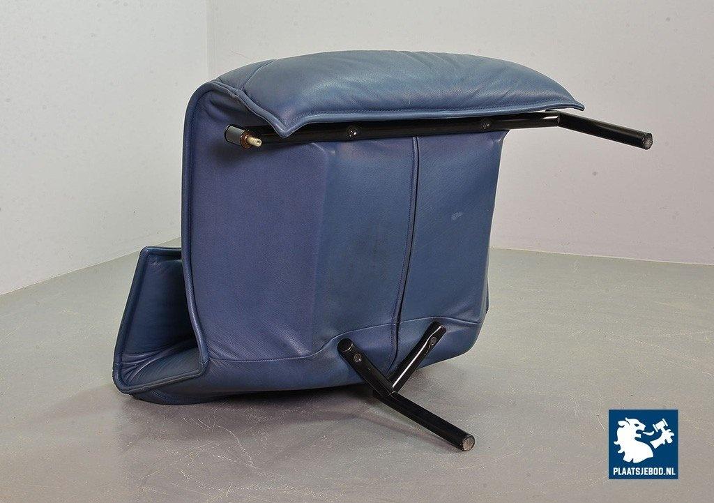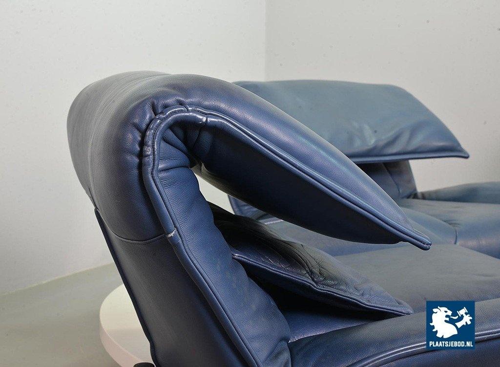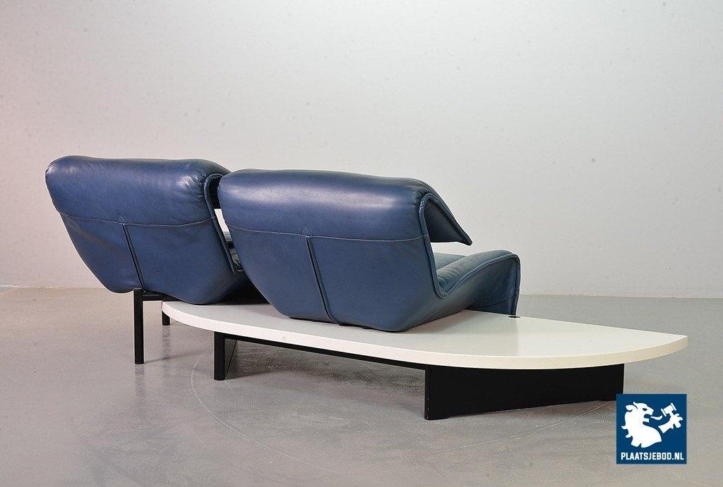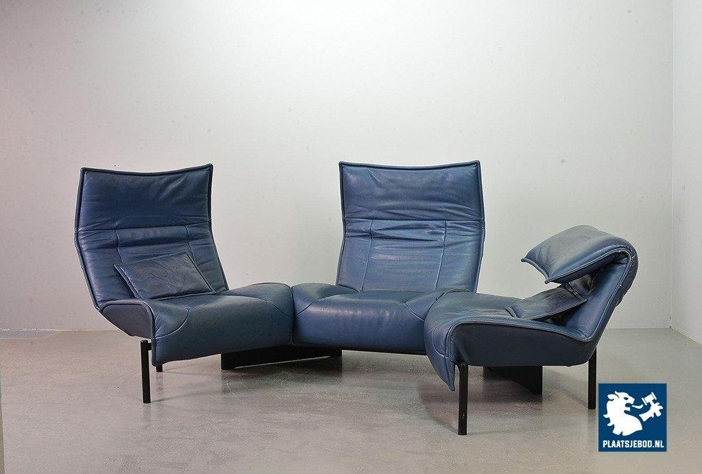 Lot 305-109-SS080-C2BSTAIRS: Vico Magistretti Mid-Century Italian Design 3-Seat Flexible ‘Veranda’ Sofa for Cassina in Petrol Blue Leather. Italy, 1980s.