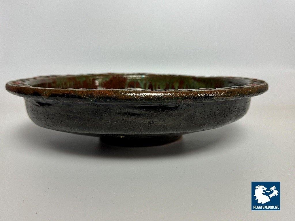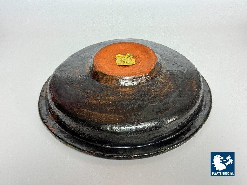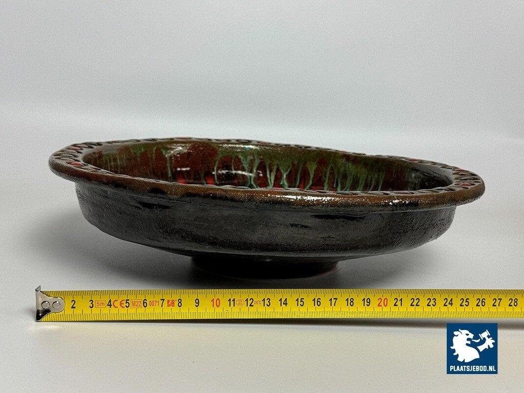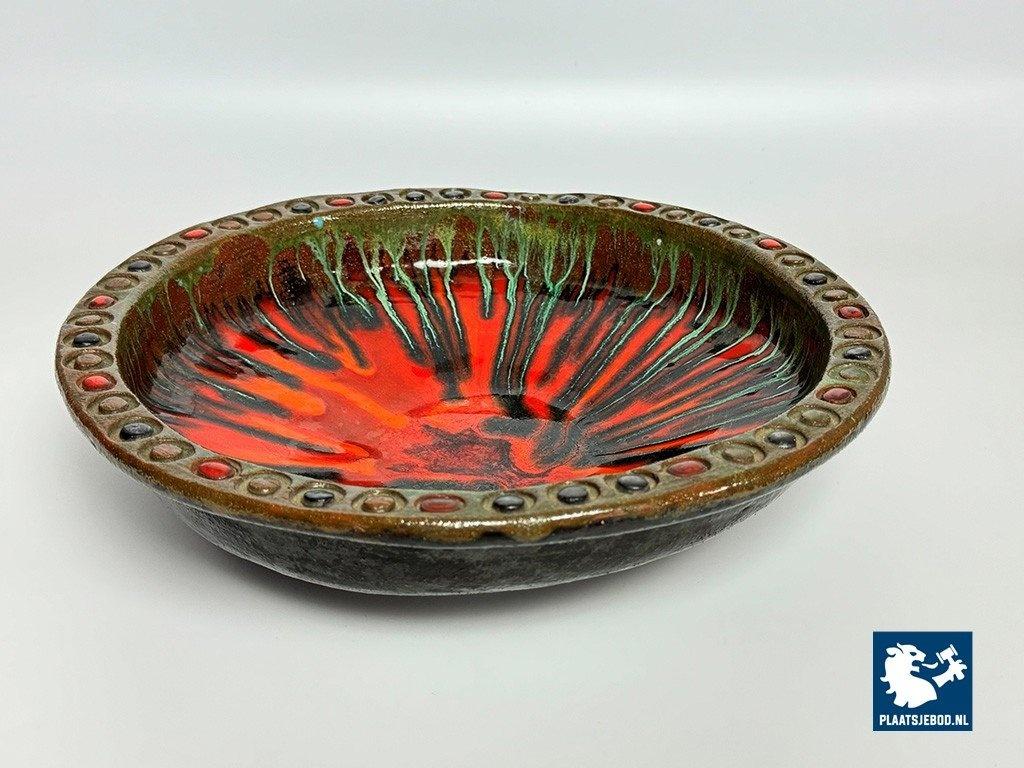 Vintage 1960s Handcrafted Ceramic Colorful Bowl by Kunstkeramiek Monasterium Berg Sinaï, Bruges, Belgium. This handcrafted bowl features, expressive colours and vibrant glazing that evoke mid-century style. Each detail reflects artisan craftsmanship. This piece is a striking decorative example of fine Belgiuan post-war ceramic art. Dimensions: Height 8,5 Diameter 30 cm.