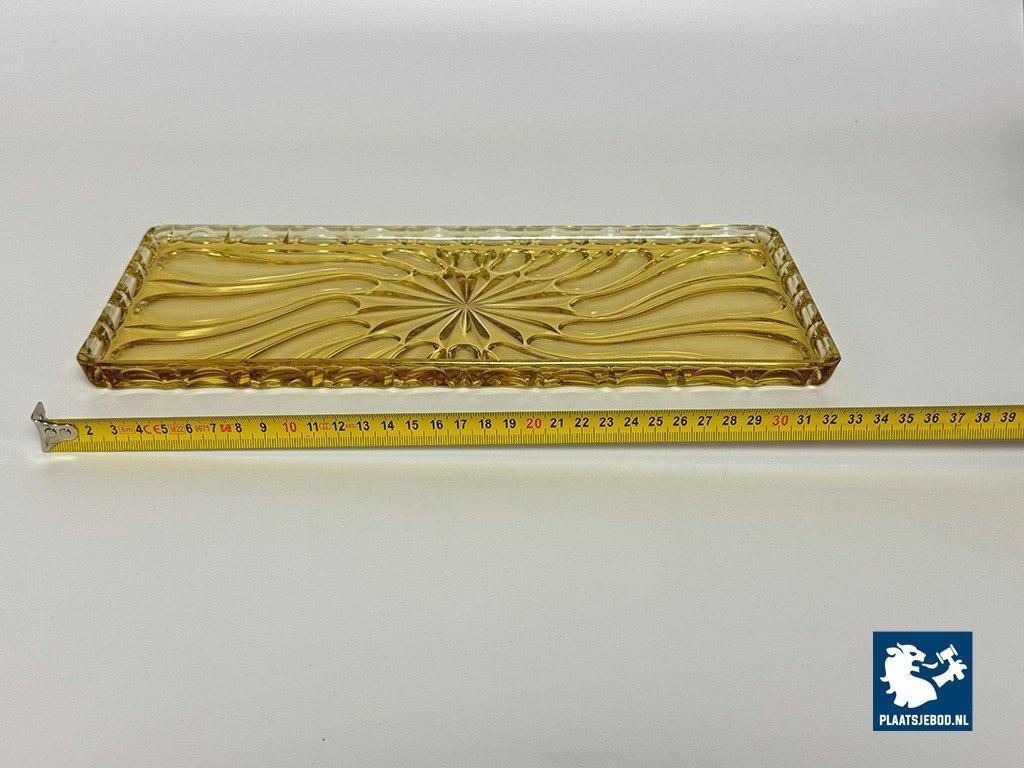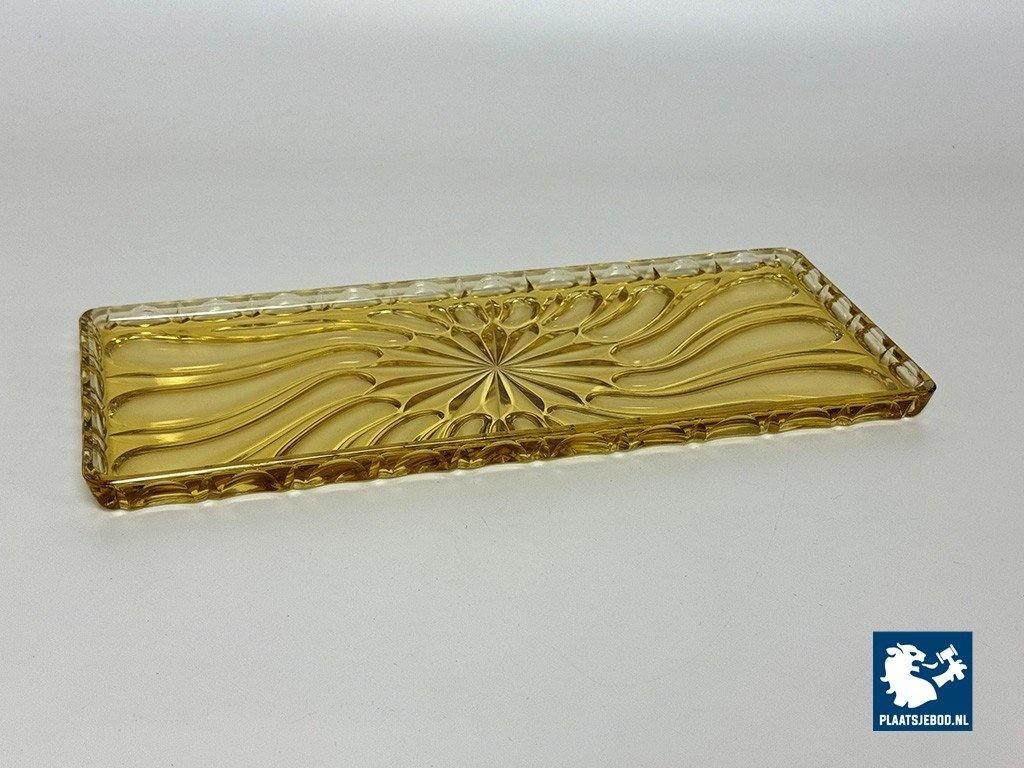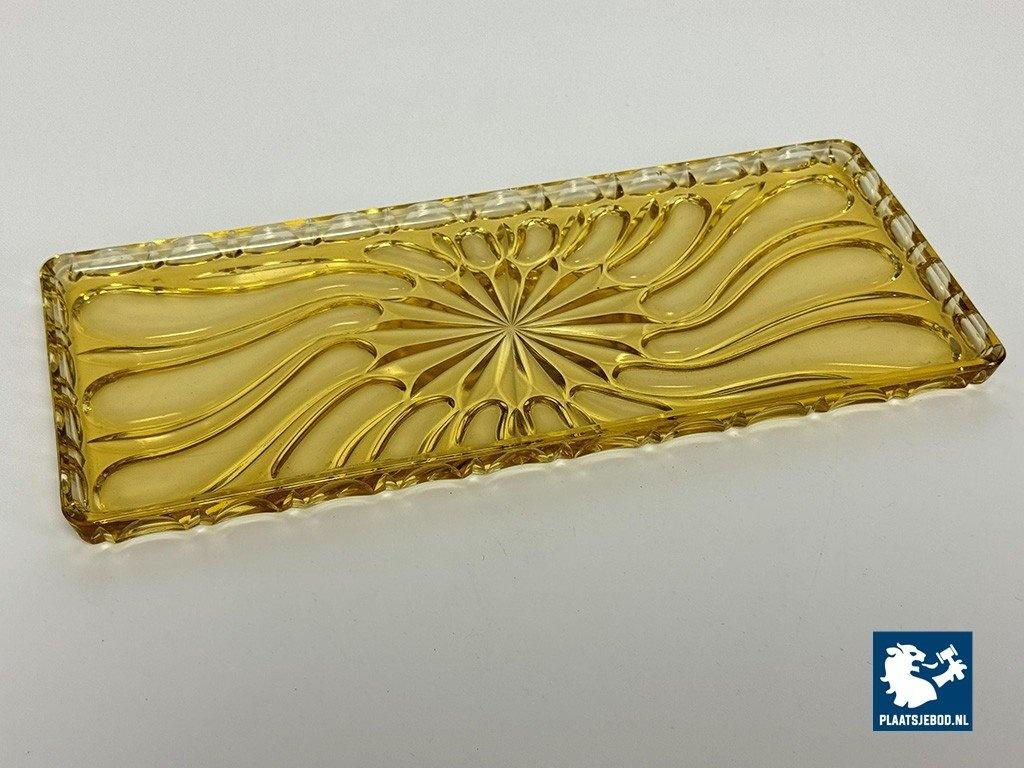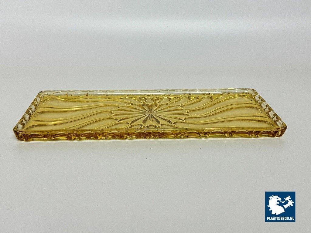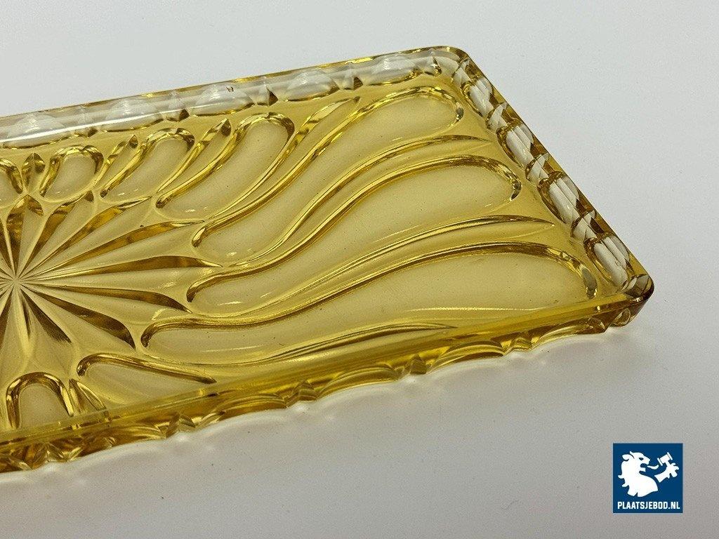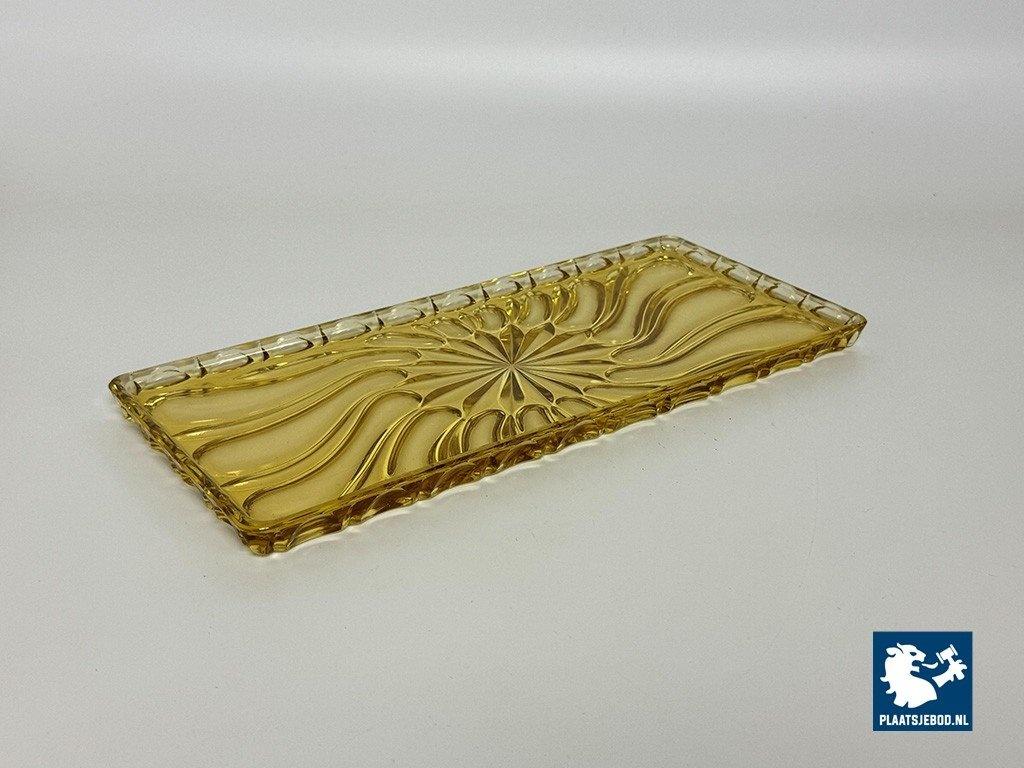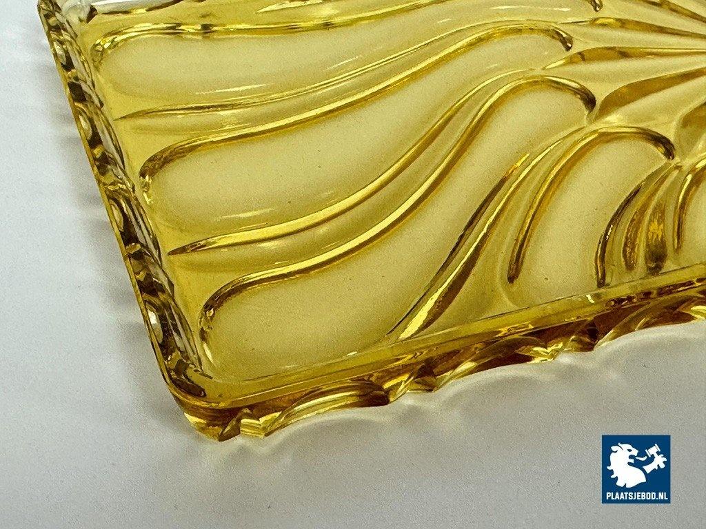 Lot 305-182-DO-042: Vintage Art Deco Belgian Soft Yellow Glass Rectangle Cake Plate with Elegant Pattern, Belgium 1960s.