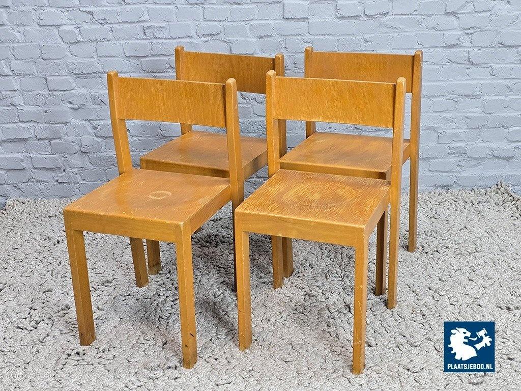 Set of four vintage Scandinavian children’s school chairs crafted from solid beechwood. Designed to be stackable and highly functional, these chairs reflect honest craftsmanship and practical design. The set is in neat vintage condition, with visible wear consistent with age and use, adding to their authentic character. Dimensions: Height 78,5 Width 37 Depth 39,5 cm.