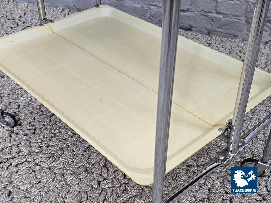 Lot 305-089-TT727-1-A: Vintage Foldable and Mobile Chrome Steel Serving Trolley with 2 White Plastic Layers, 1970s.