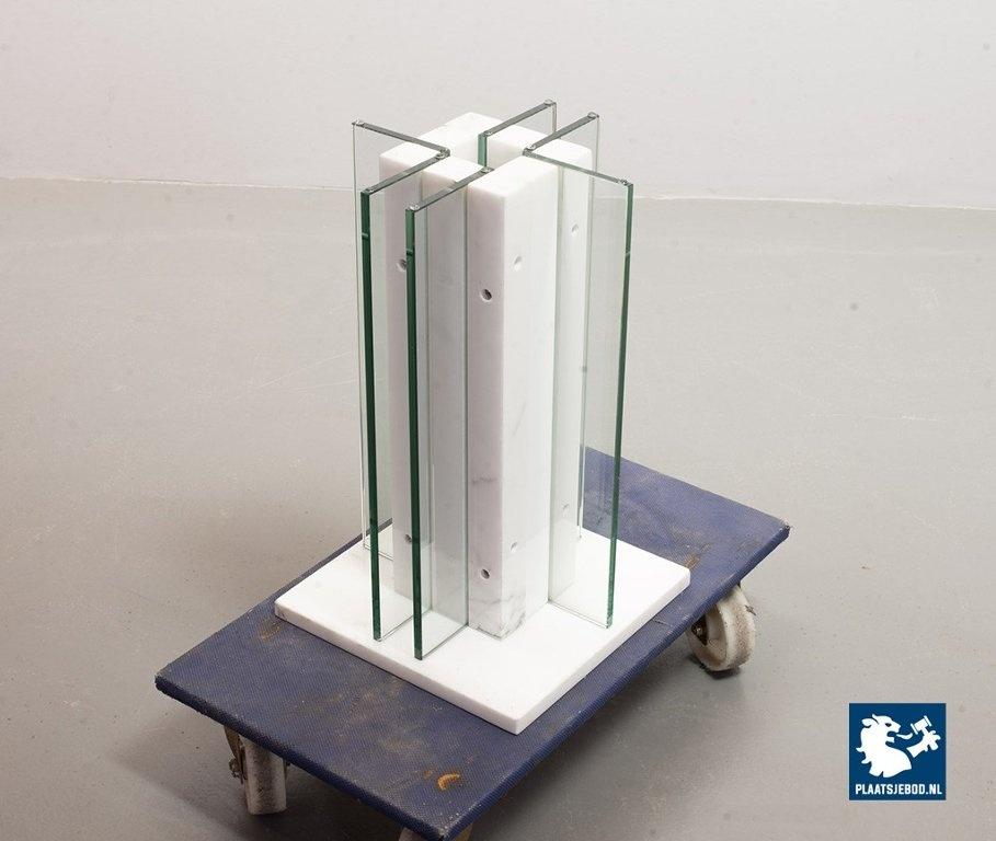 Lot 305-025-OT084-PPL: White Mid-Century Marble Italian Square Side Table / Pedestal with Glass Top and Lighting Option. Italy, 1970s.