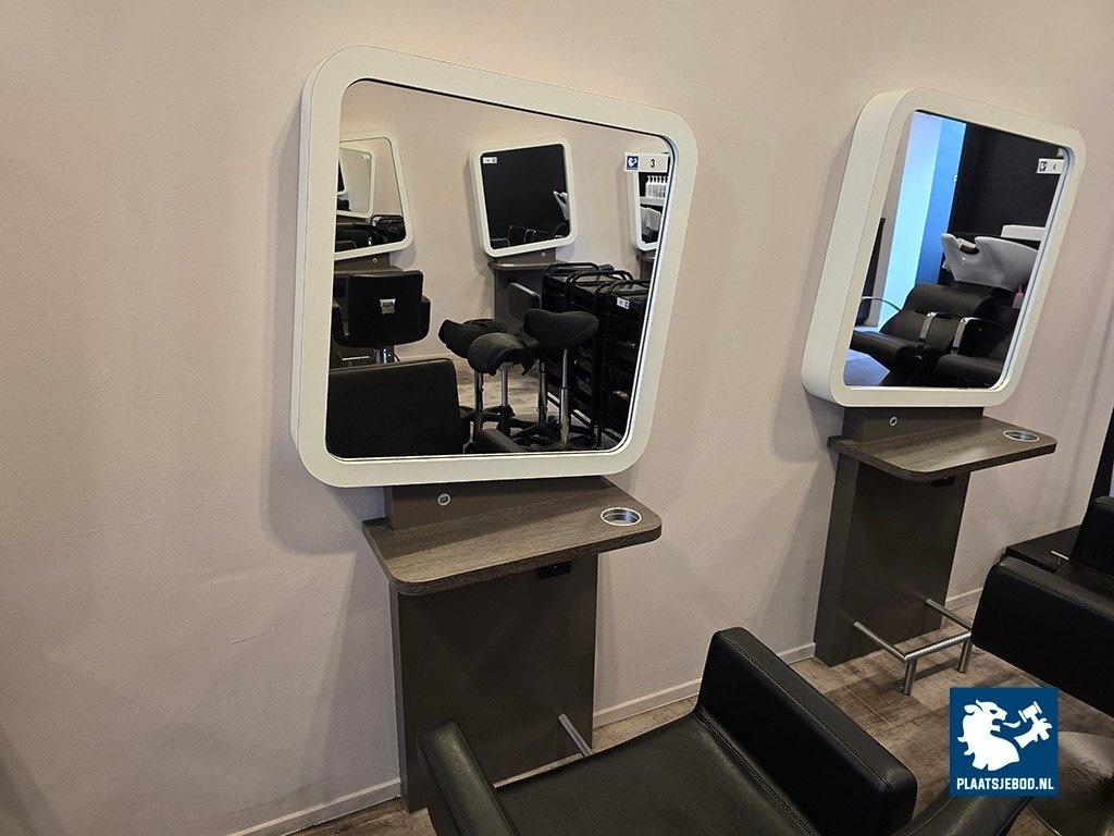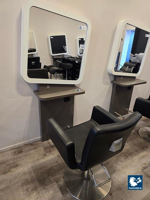 1 x 1-Zijdige kappersspiegel ca 80 x 170 cm voorzien van voetsteun, elektra en USB aansluiting, met hydraulisch voetbediende Sibel kappersstoel
