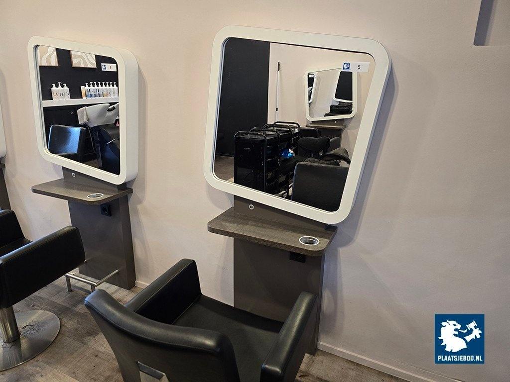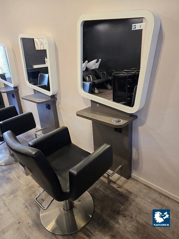 1 x 1-Zijdige kappersspiegel ca 80 x 170 cm voorzien van voetsteun, elektra en USB aansluiting, met hydraulisch voetbediende Sibel kappersstoel