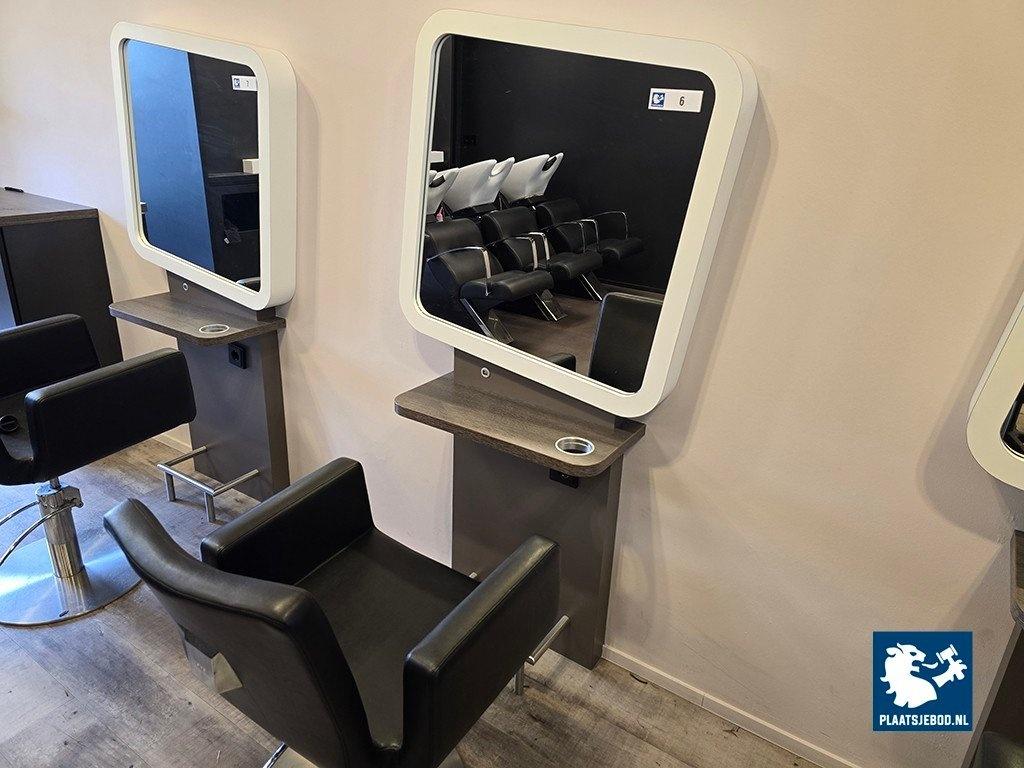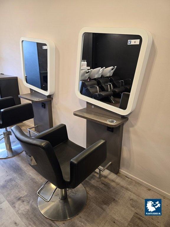 1 x 1-Zijdige kappersspiegel ca 80 x 170 cm voorzien van voetsteun, elektra en USB aansluiting, met hydraulisch voetbediende Sibel kappersstoel