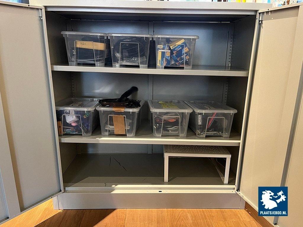 Kavel 327-024: 1 x 2-Deurs metalen archiefkast met divers kantoorgerief