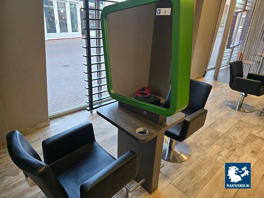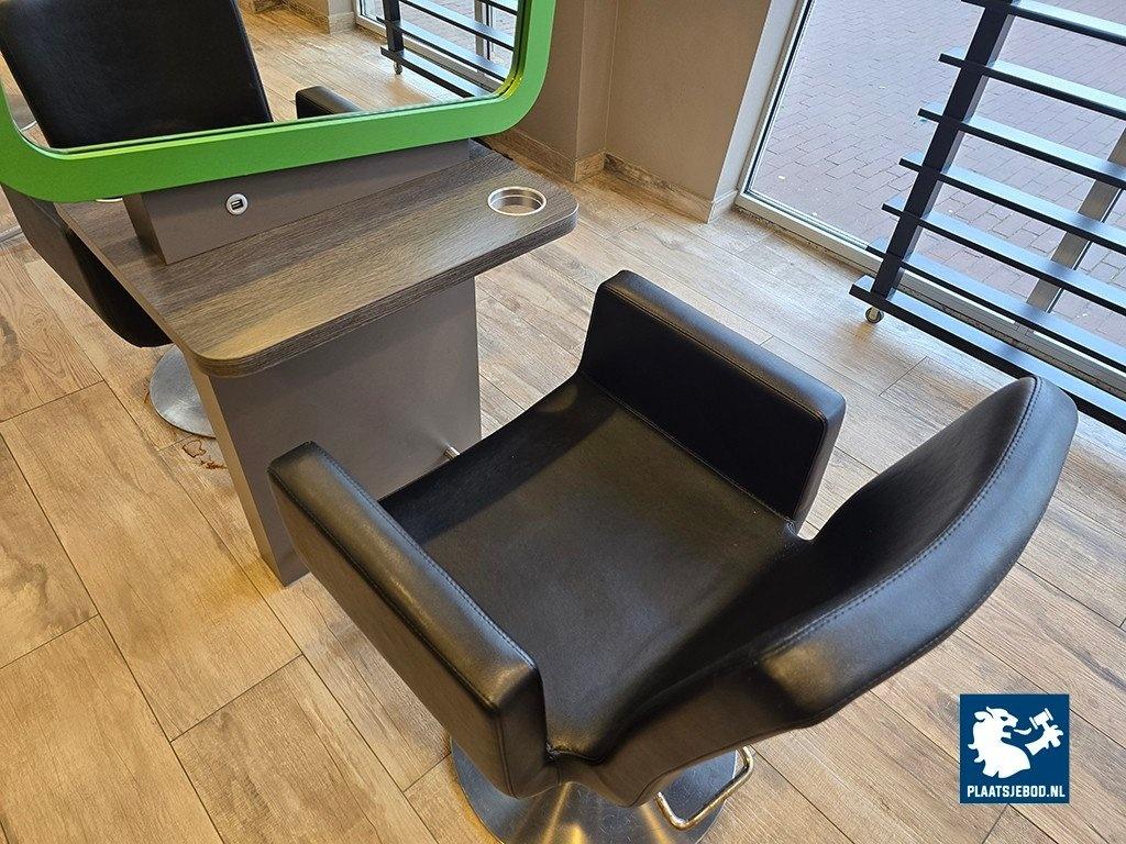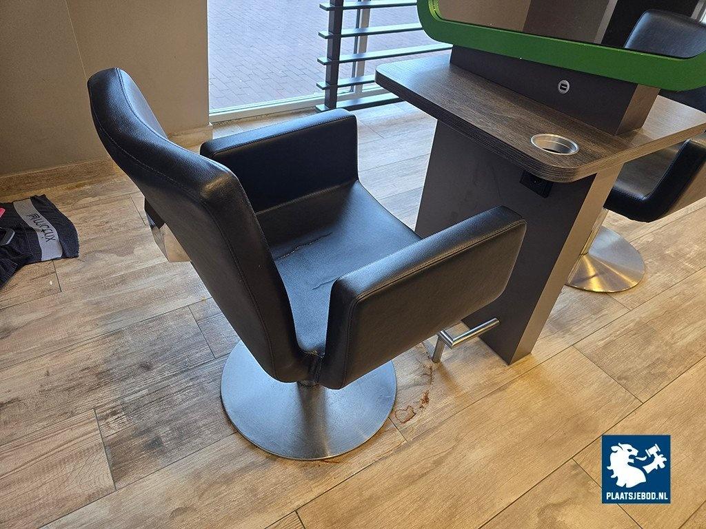1 x 2-Zijdige kappersspiegel ca 80 x 57 x 170 cm voorzien van voetsteun, elektra en USB aansluiting, met 2 x hydraulisch voetbediende Sibel kappersstoel