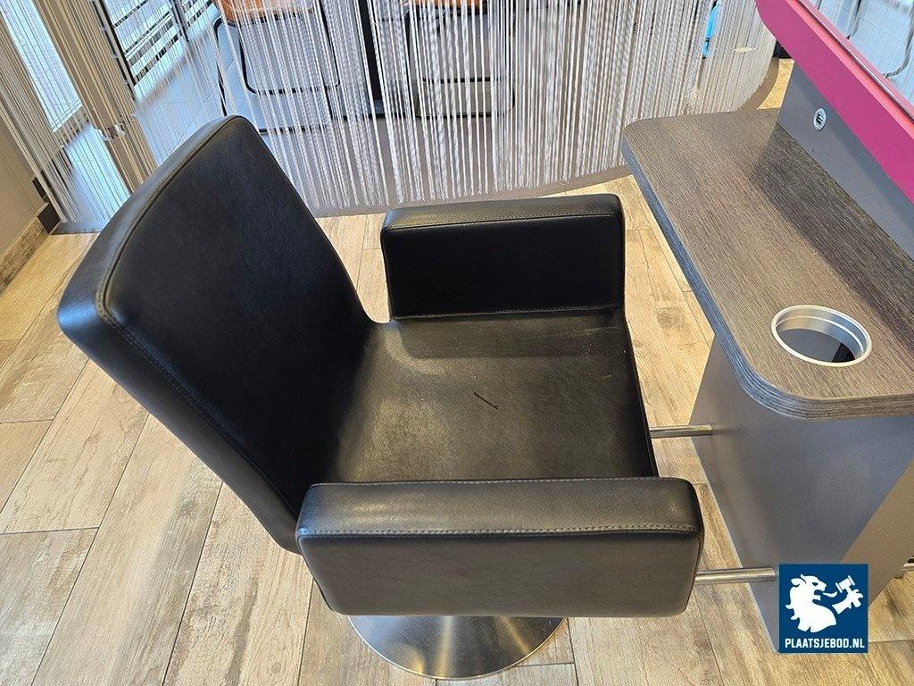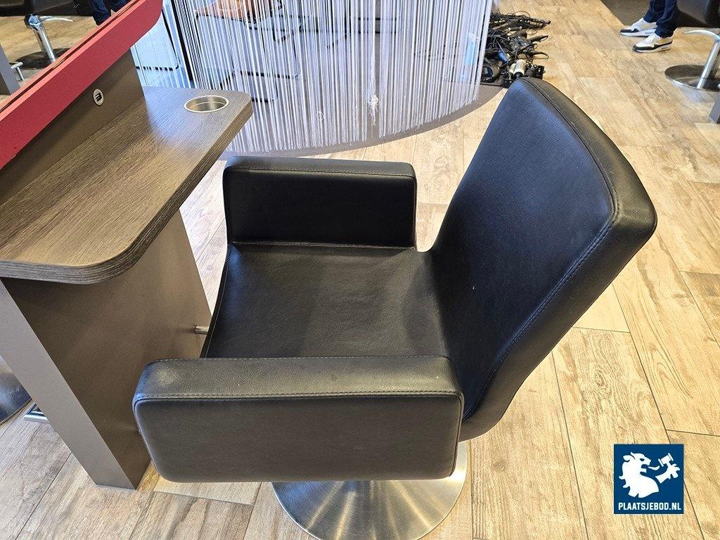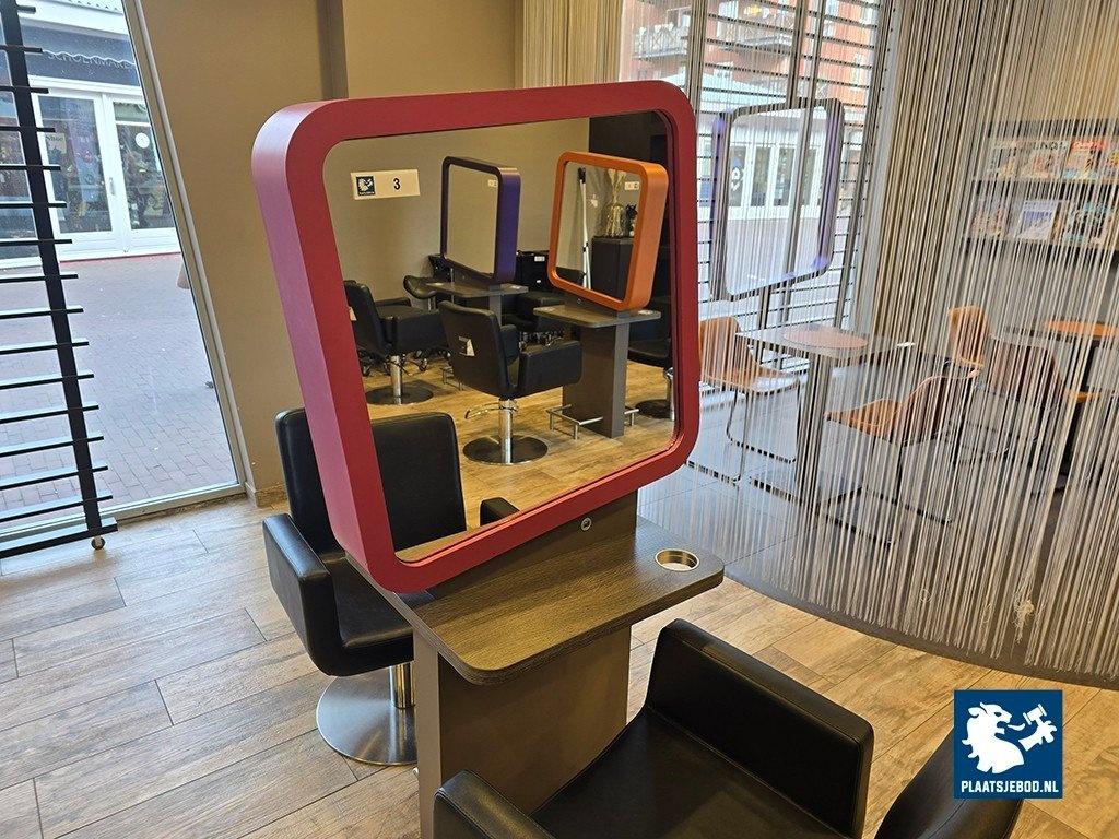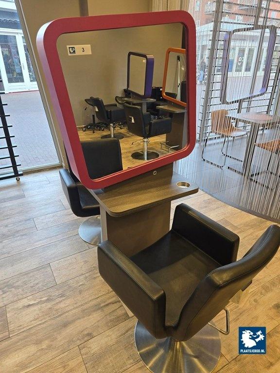 1 x 2-Zijdige kappersspiegel ca 80 x 57 x 170 cm voorzien van voetsteun, elektra en USB aansluiting, met 2 x hydraulisch voetbediende Sibel kappersstoel