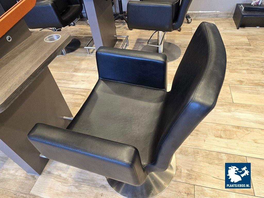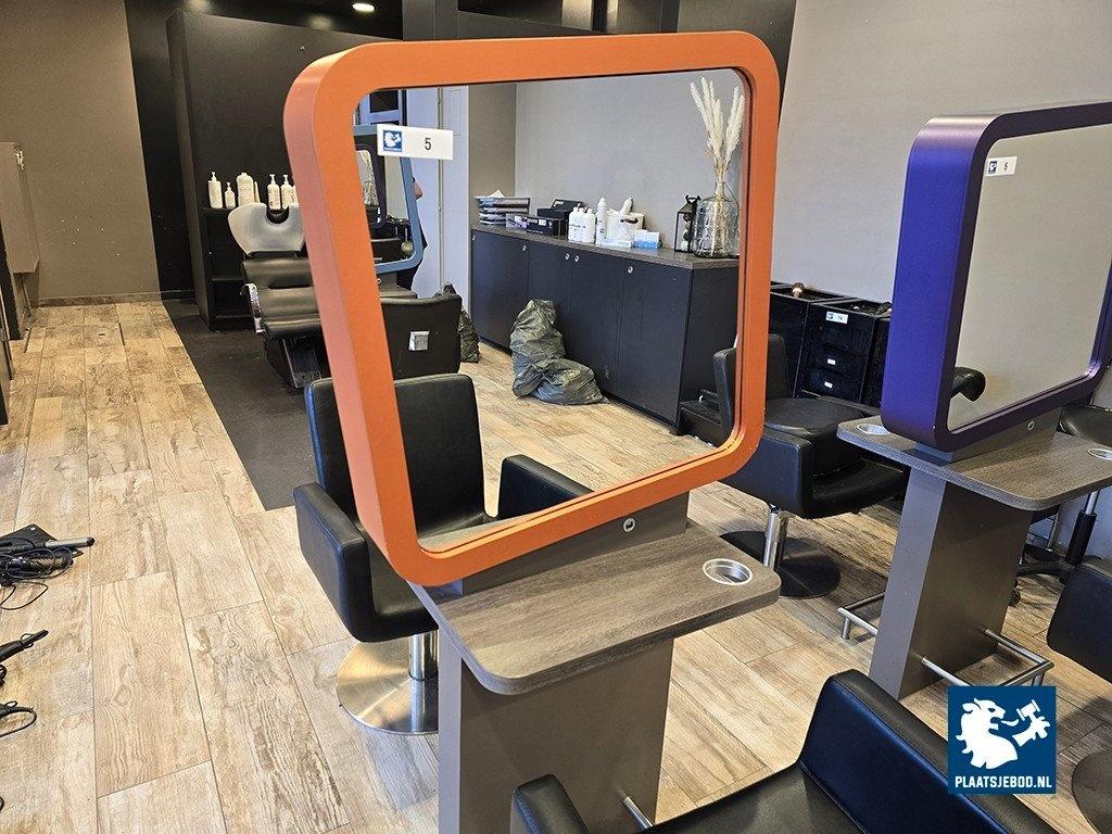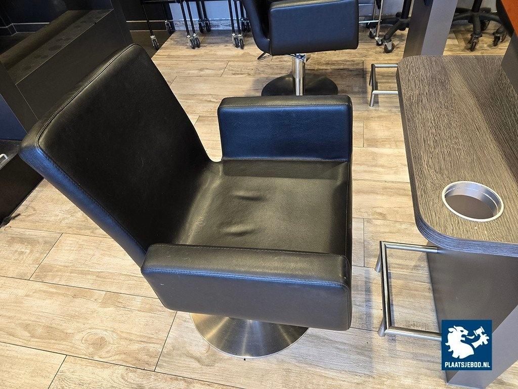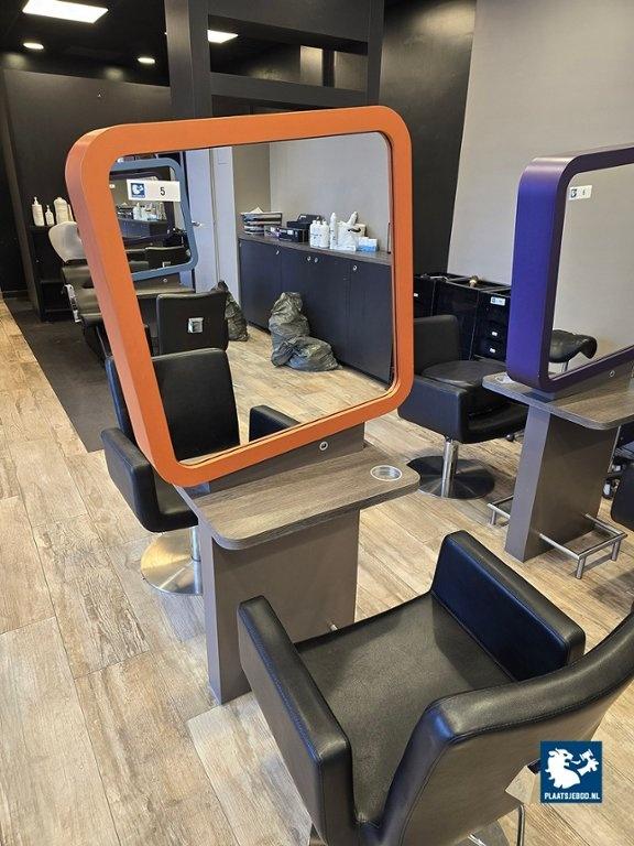 1 x 2-Zijdige kappersspiegel ca 80 x 57 x 170 cm voorzien van voetsteun, elektra en USB aansluiting, met 2 x hydraulisch voetbediende Sibel kappersstoel