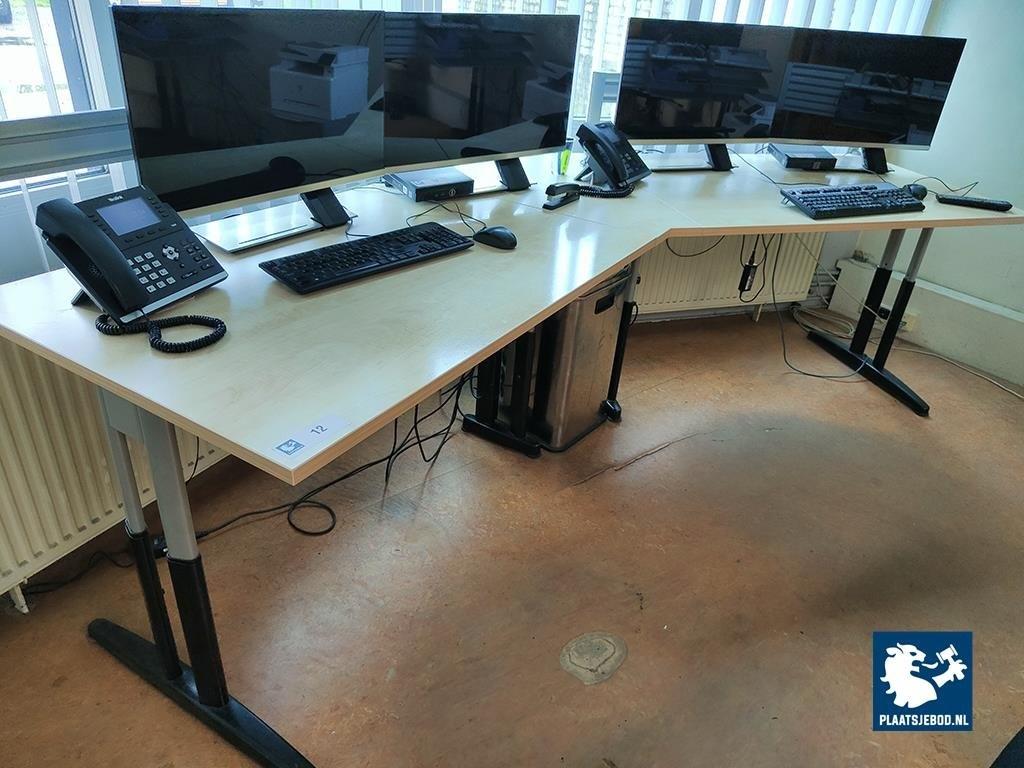 Kavel 166-012: 1 x 3-delig systeem bureau met repro beuken hoogte verstelbaar blad en 2 rijdbare bureaustoelen