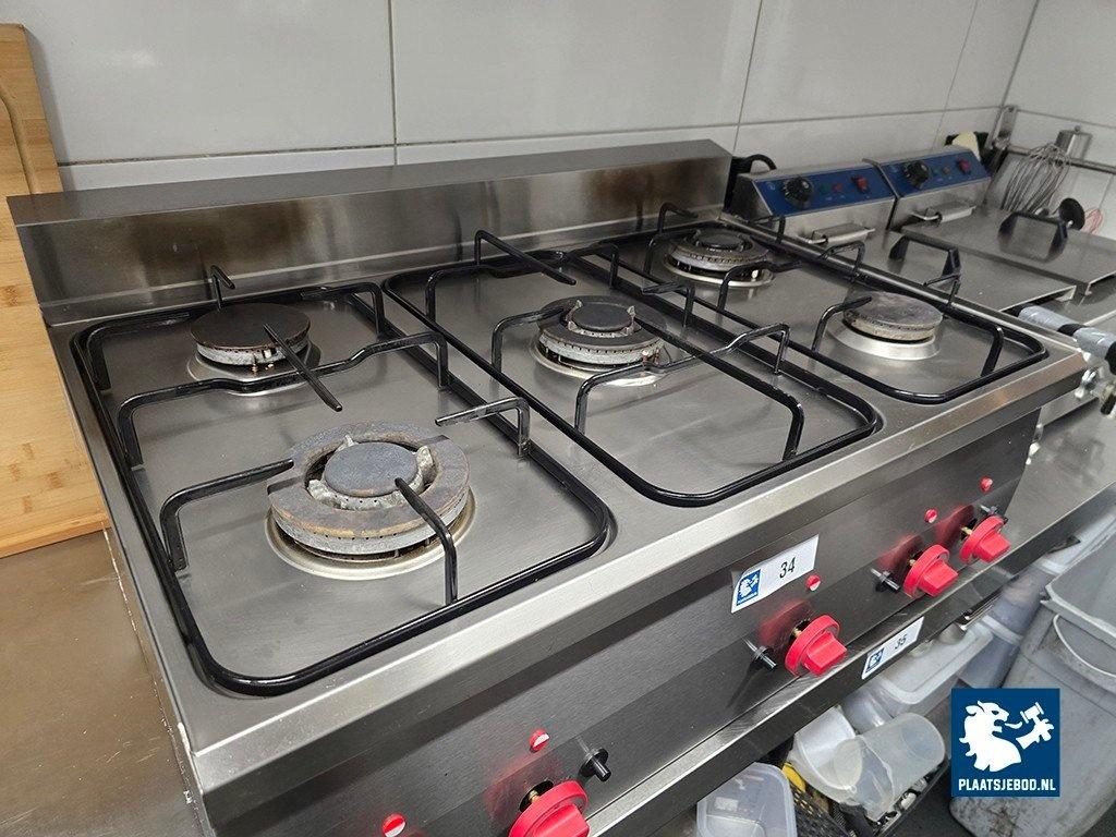 Kavel 312-034: 1 x 5-Pits RVS tafelmodel gasfornuis met gietijzeren pannedragers