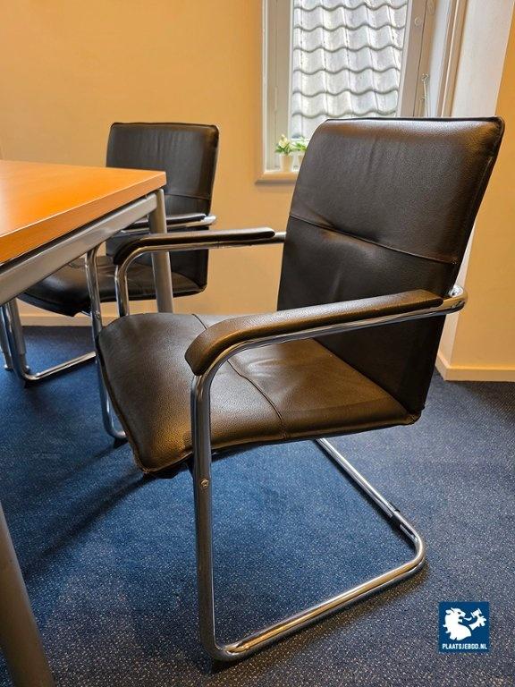 1 x 6-Kantige 2-delige conferentie opstelling met 6 x conferentiestoel met armleggers en sledevoet