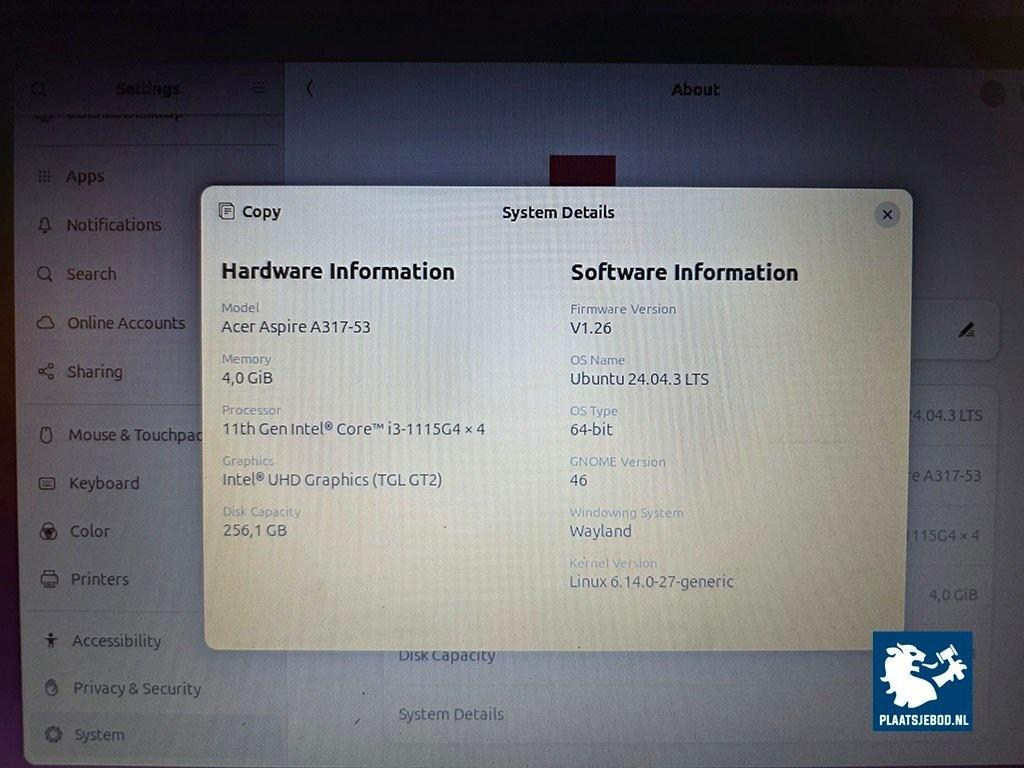 1 x Acer Aspire 3 17 inch laptop met Ubuntu installatie. Incl. adapter