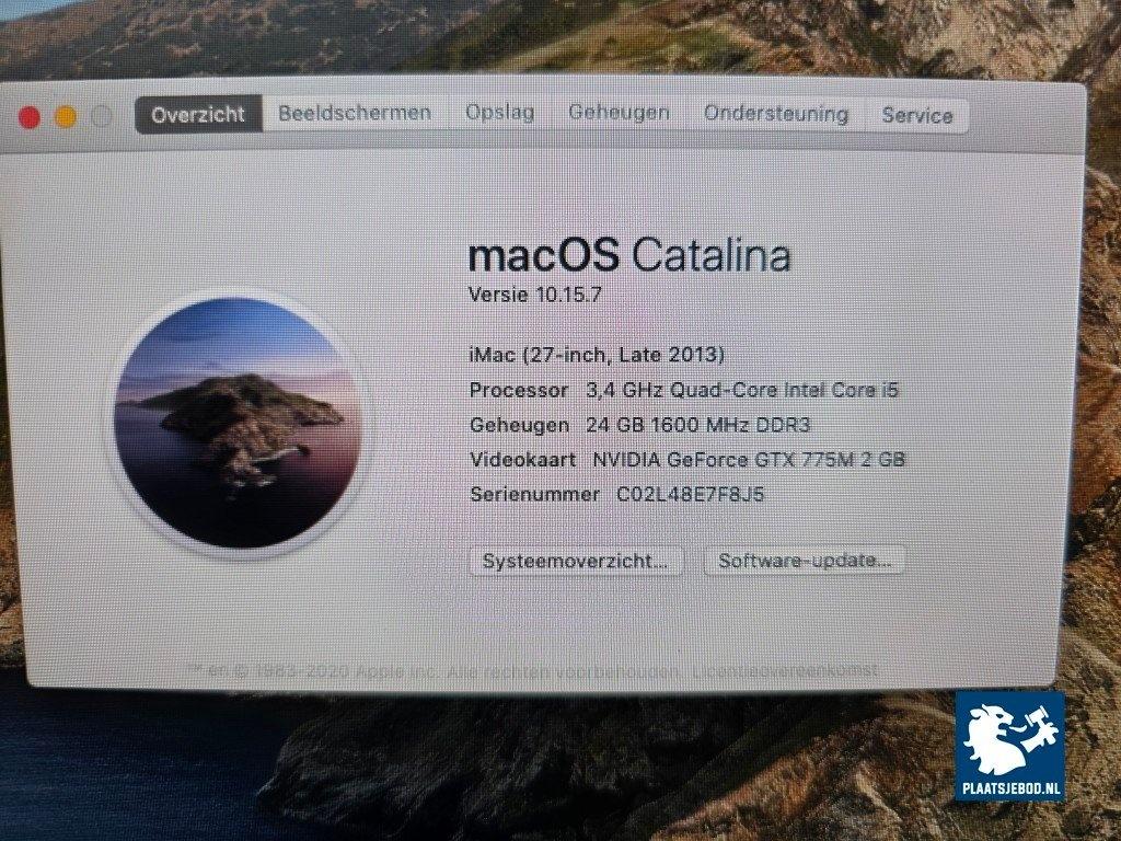 1 x Apple iMac 27 inch model A1419, 3,4 GHz Quad-Core Intel Core i5, 24 GB DDR3, 1 TB opslag