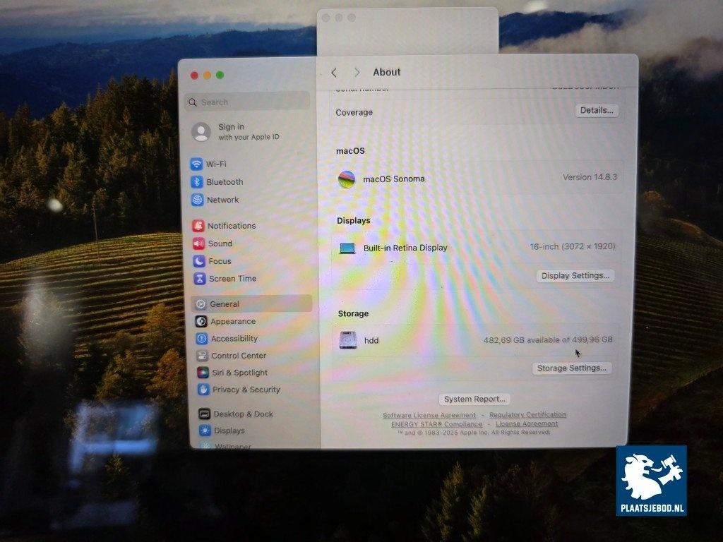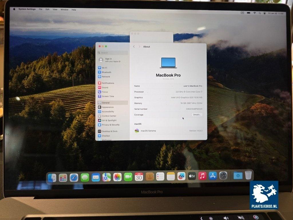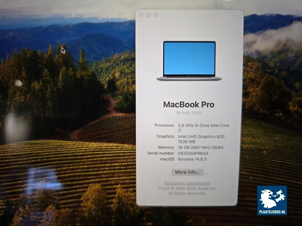 1 x Apple MacBook Pro 16 inch model A2141, 2,6 GHz 6-core Intel Core i7, 16 GB DDR4, 512 GB opslag met oplader