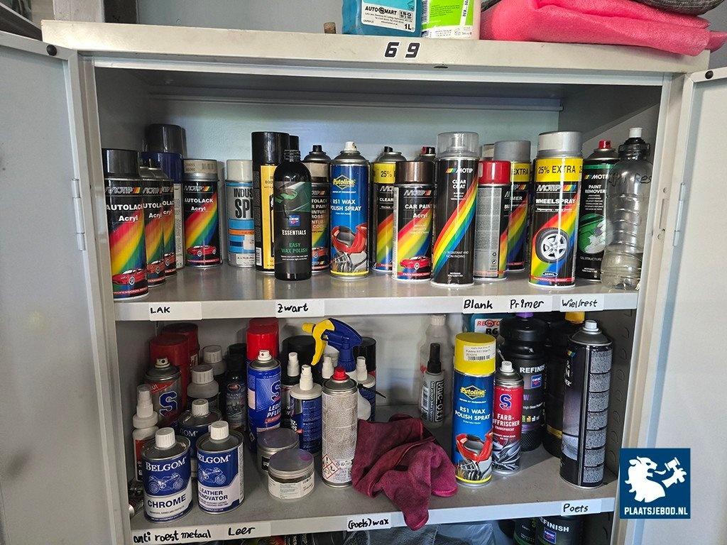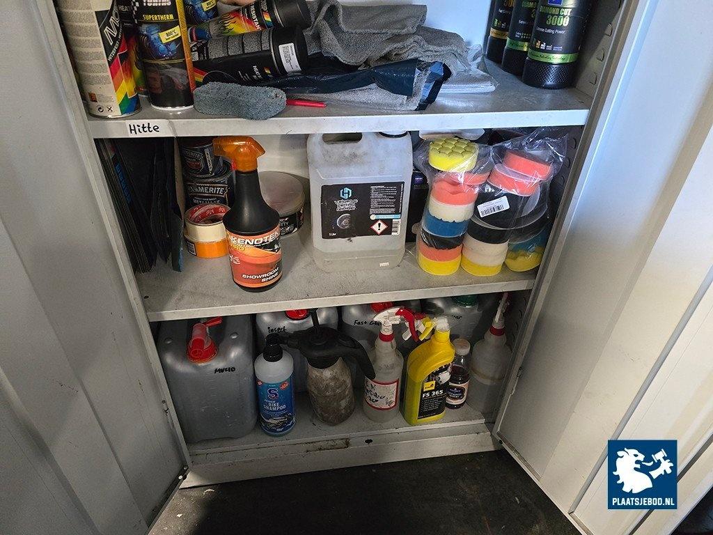 1 x Archiefkast met diverse reinigings- en onderhoudsmiddelen