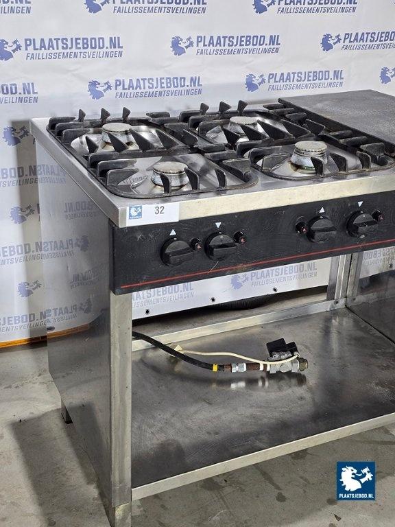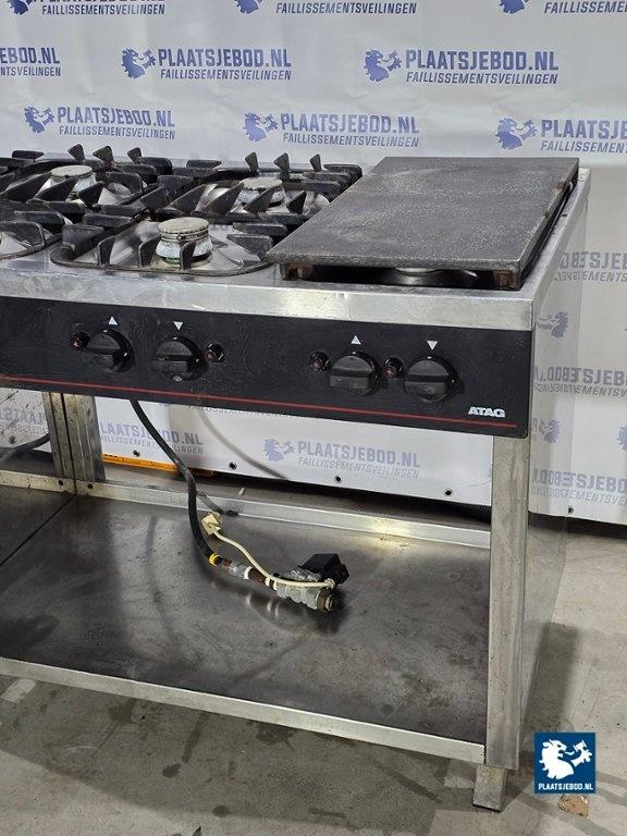 1 x ATAG RVS 6-pits gaskookplaat met bakplaat, afm.: 100 x 70 cm.
