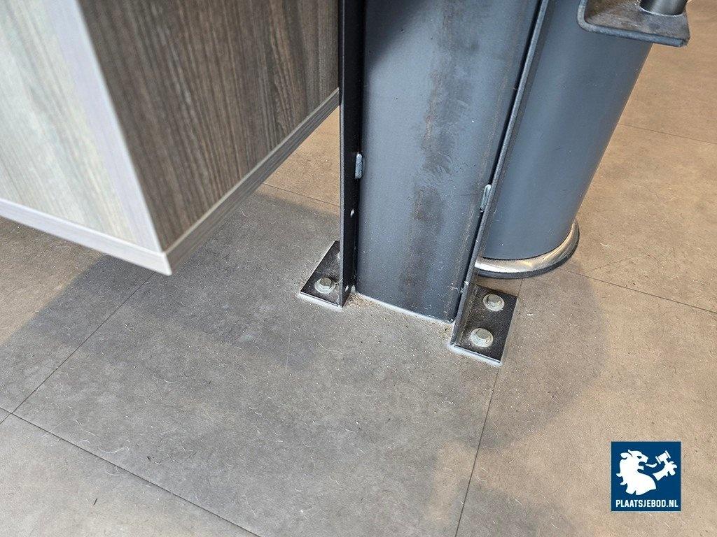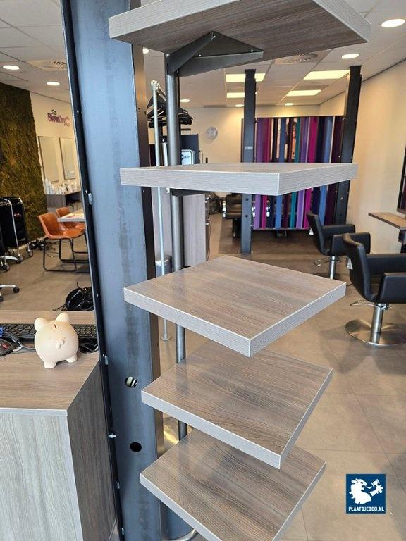1 x Balie-kassameubel met stroomaansluitingen en etagerek, afm. 60 x 60 x 260 cm.