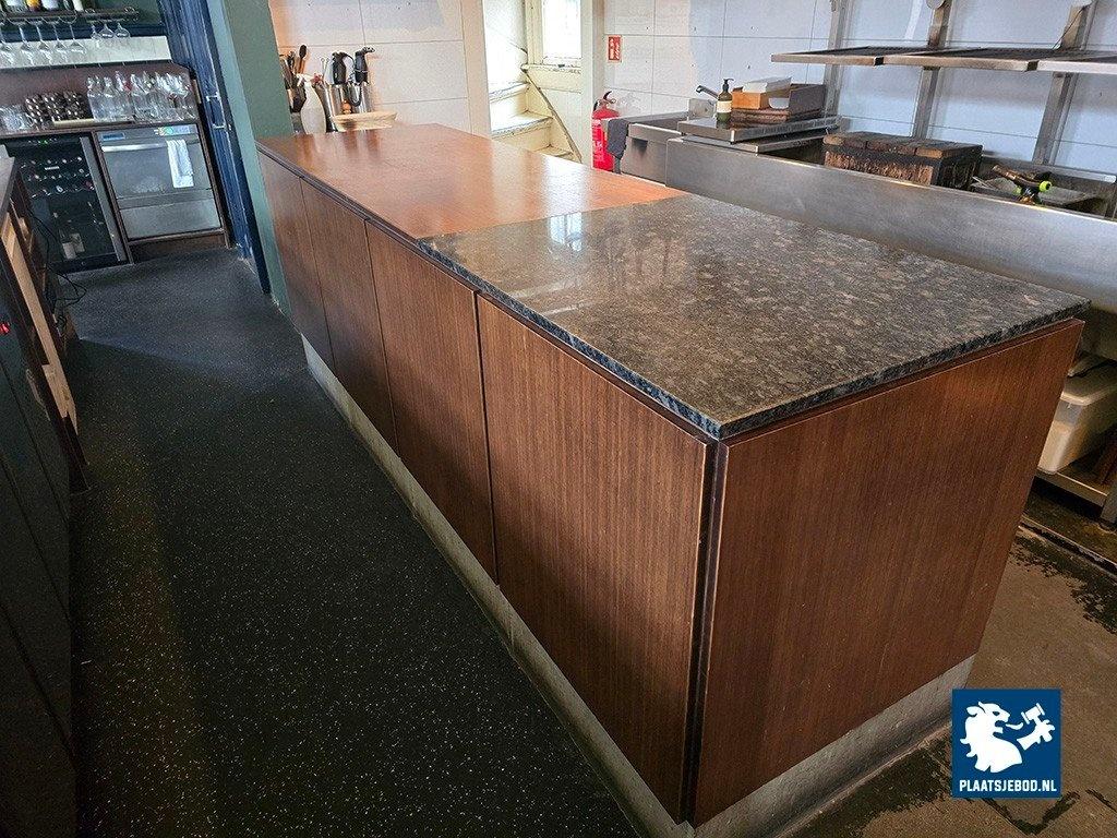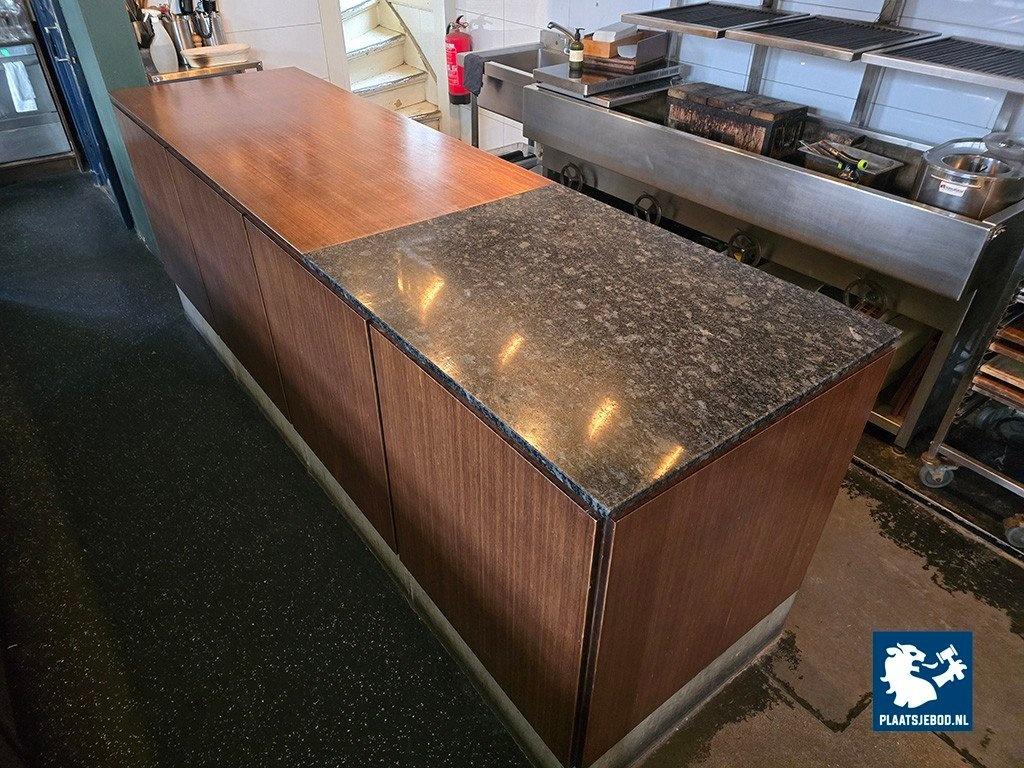 1 x Bamboo design meubel met deels marmeren blad, 2 x lade en 8 x stroompunt. N.B. zonder koelwerkbank en warmhoud kast