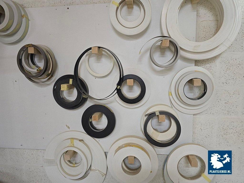1 x Brandt Kantenlijmmachine type Optimat KDF 350, bouwjaar 2005, 400 Volt met voorraad diverse kantband