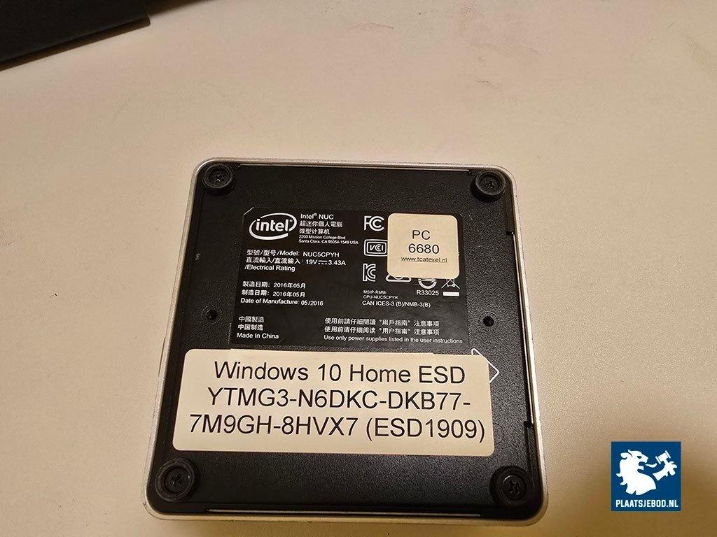 1 x Bureauopstelling met toebehoren waaronder Intel NUC met beeldscherm, Brother printer, bureau ca. 120 x 75 cm en stoel