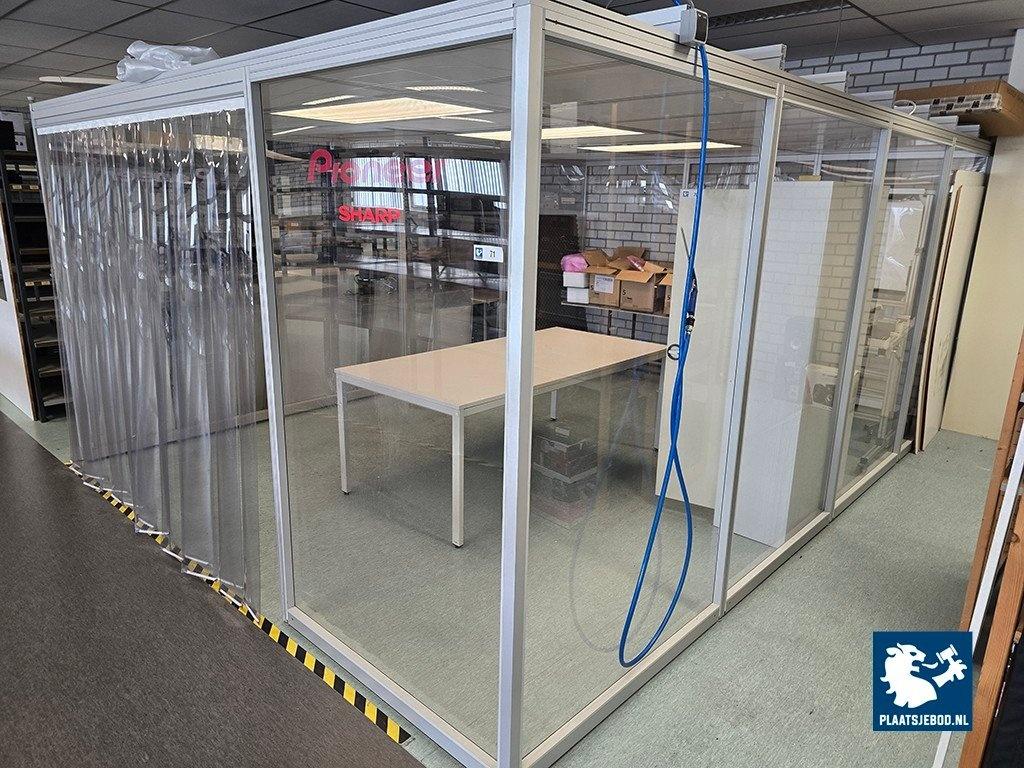 1 x Cleanroom ca. 275 x 500 x 210 cm voorzien van aluminium systeemprofiel, verlichting en overdruksysteem