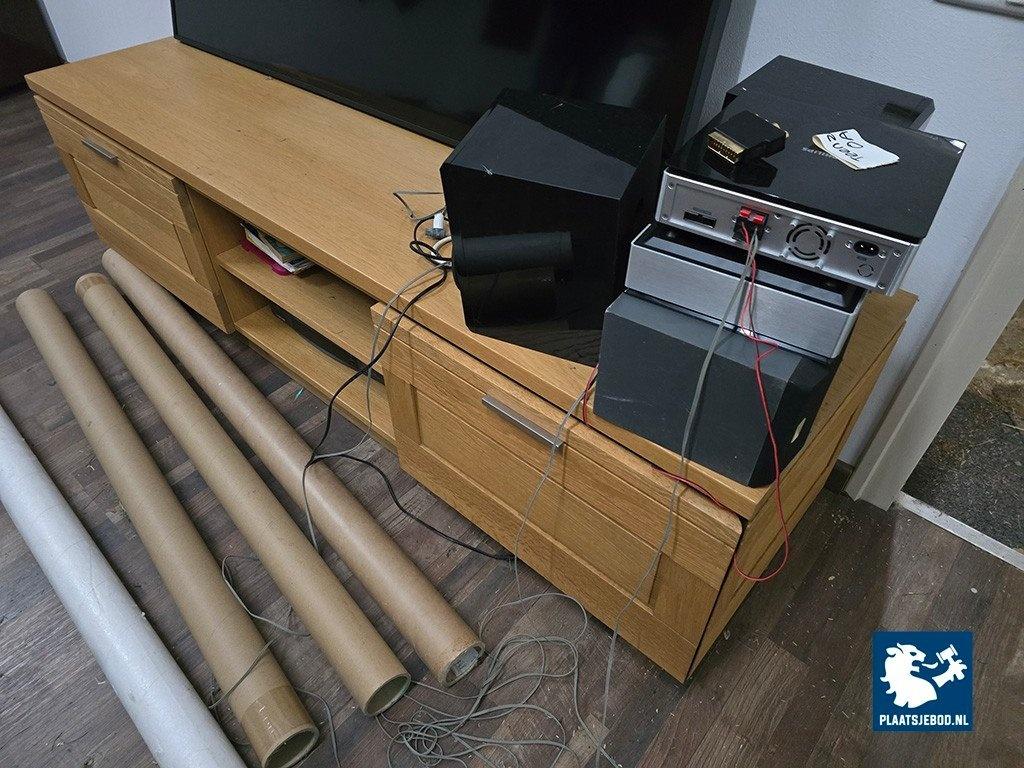 1 x Complete inhoud muziekruimte waaronder een piano, flatscreen TV, kast, versterker, hifi installatie, etc. Let op; de koper betaalt € 300,- borg t.b.v. een bezemschone oplevering, deze ontvangt de koper geheel retour bij een nette oplevering.
